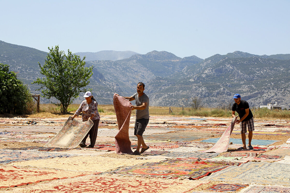 Turizm kenti Antalya'nın Döşemealtı ilçesinde kışın buğday ekilen tarlalar, yazın kavurucu sıcaklarda halı tarlasına dönüşüyor.