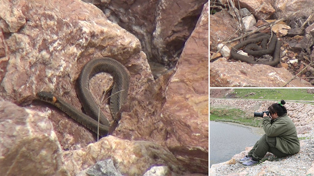 Yuvalarından dışarı çıkıp güneşlenen yılanlar, vatandaşların ve doğaseverlerinde oldukça ilgisini çekiyor.