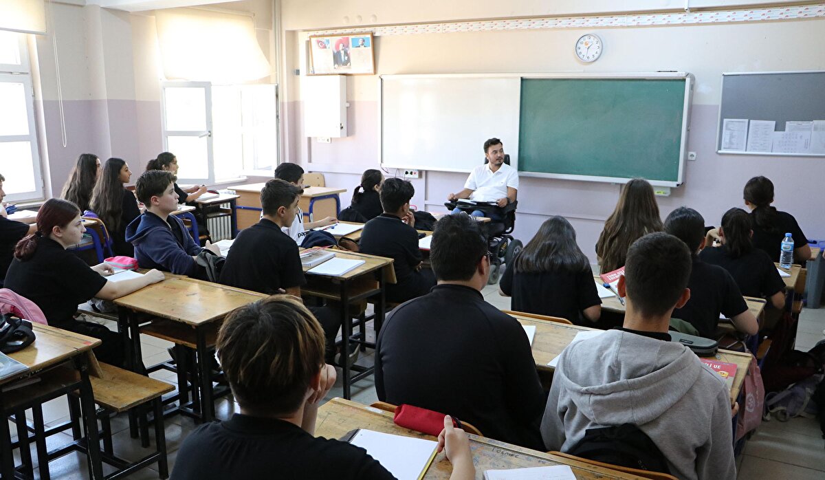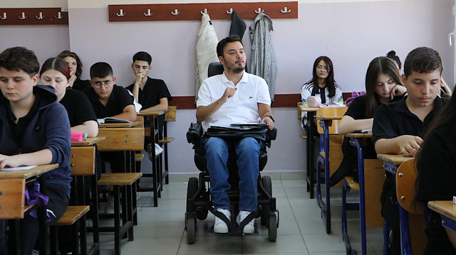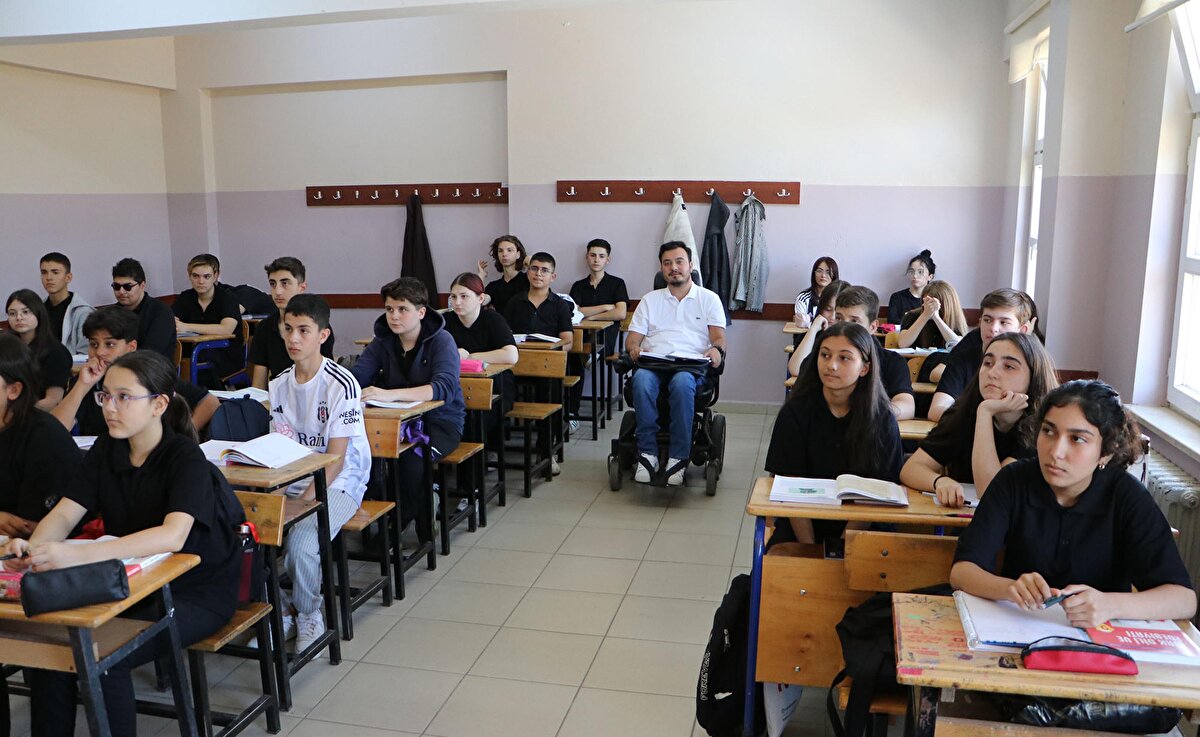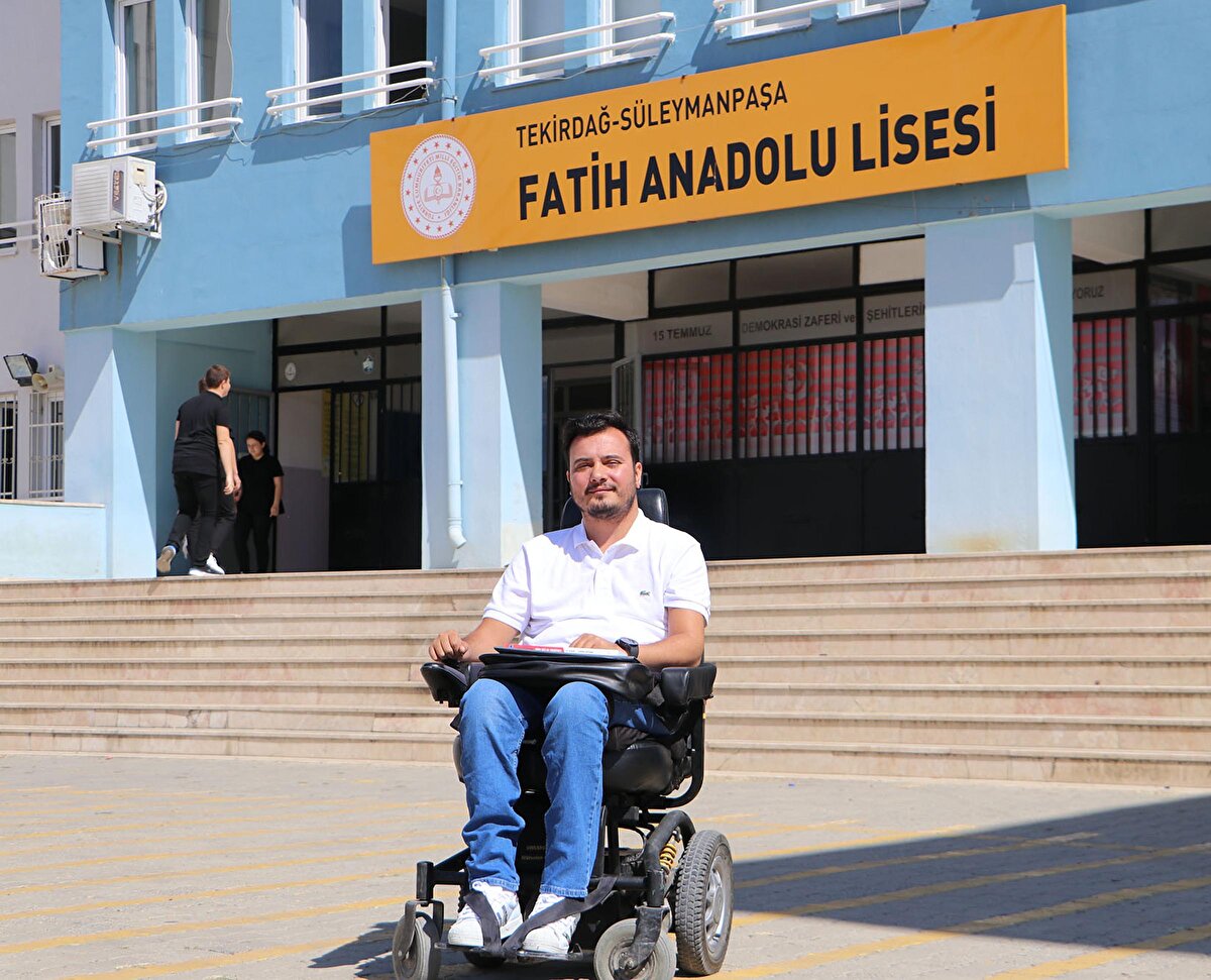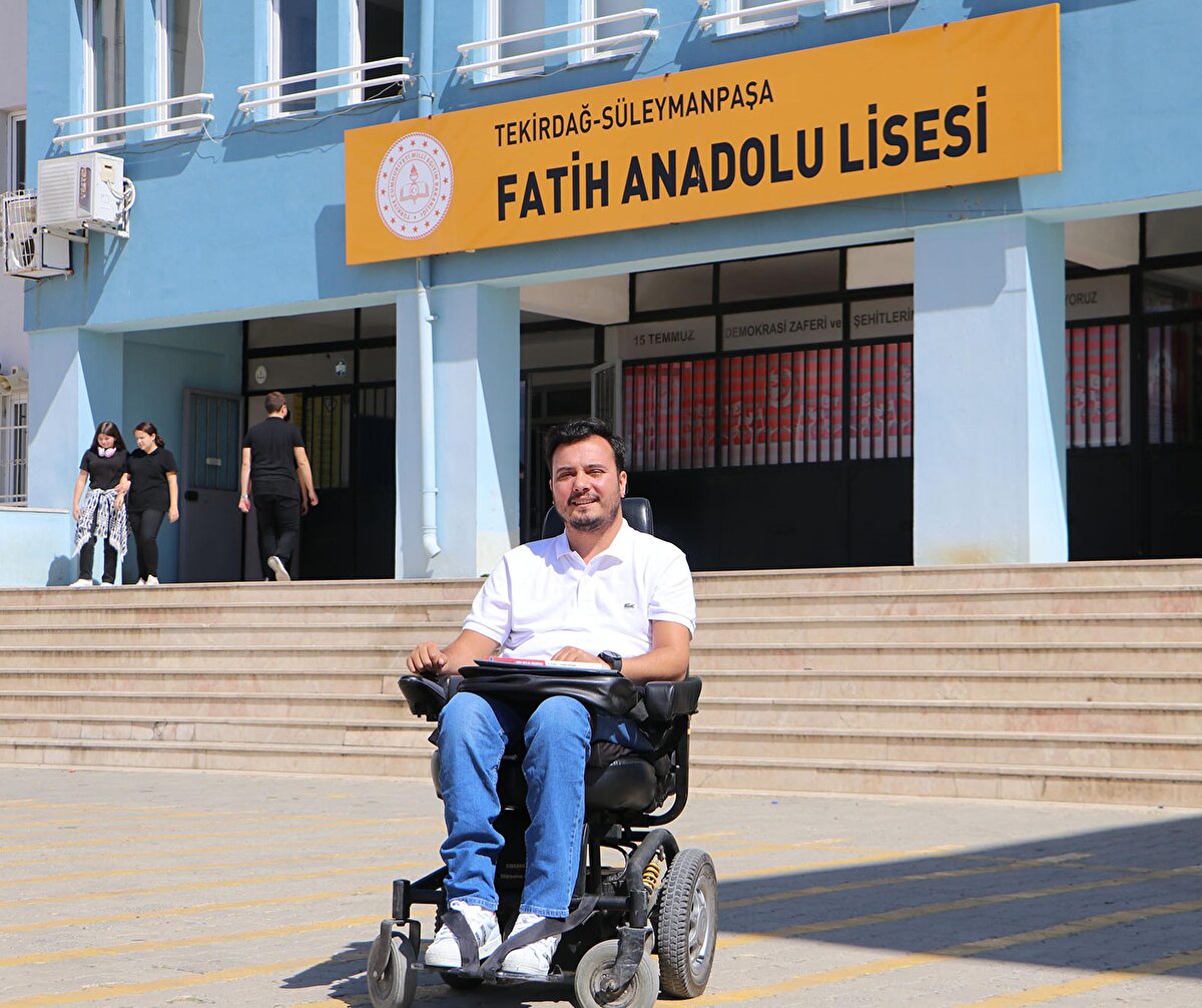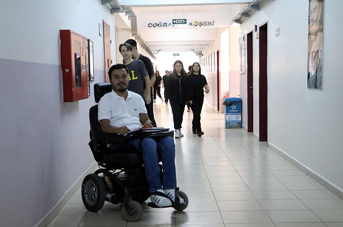 Bırakmak zorunda kaldığı liseye tekerlekli sandalye ile öğretmen olarak döndü
