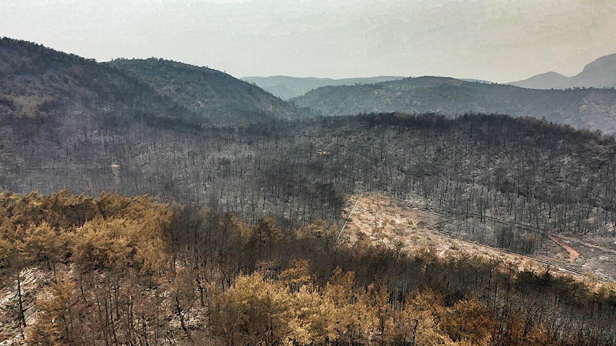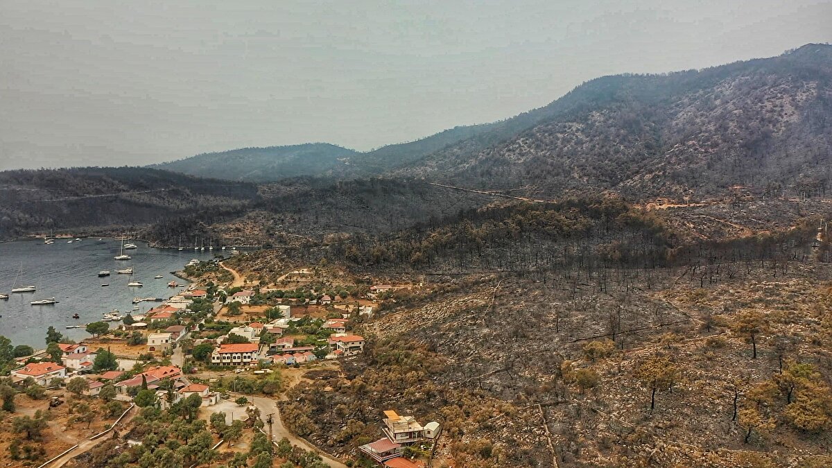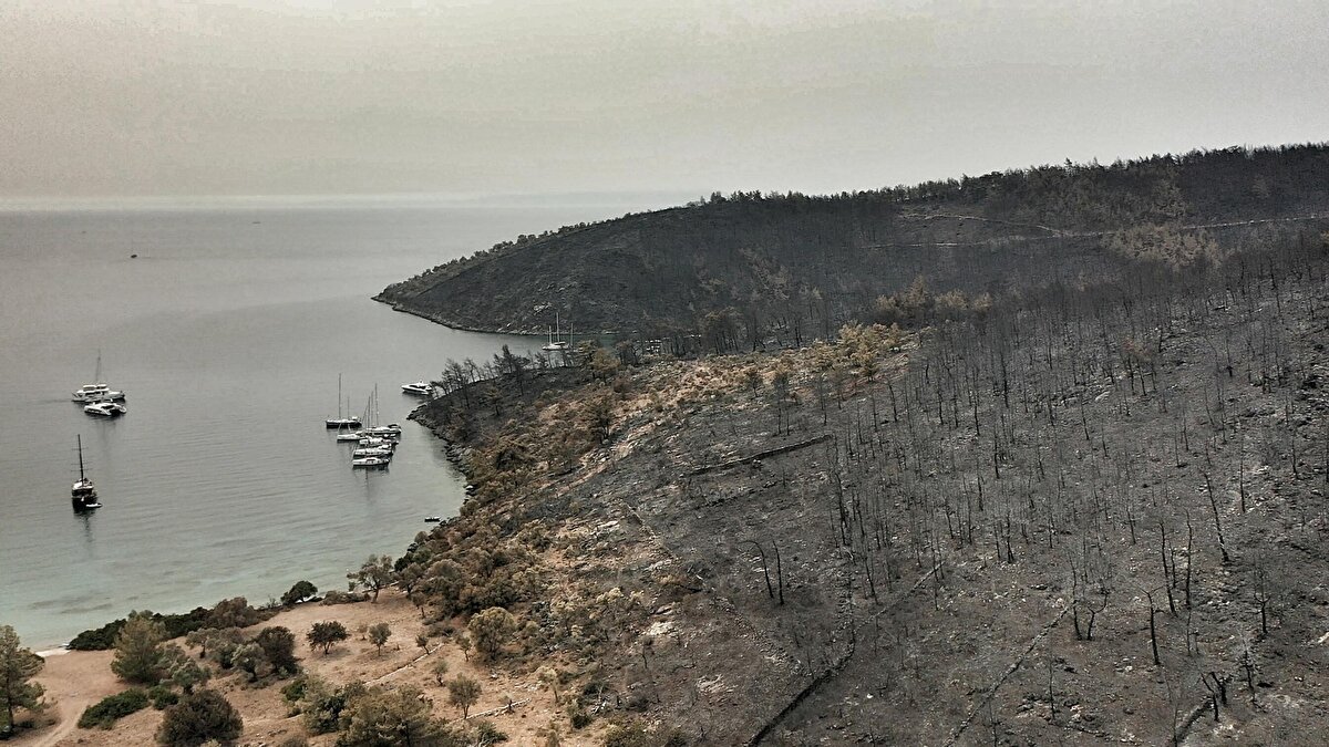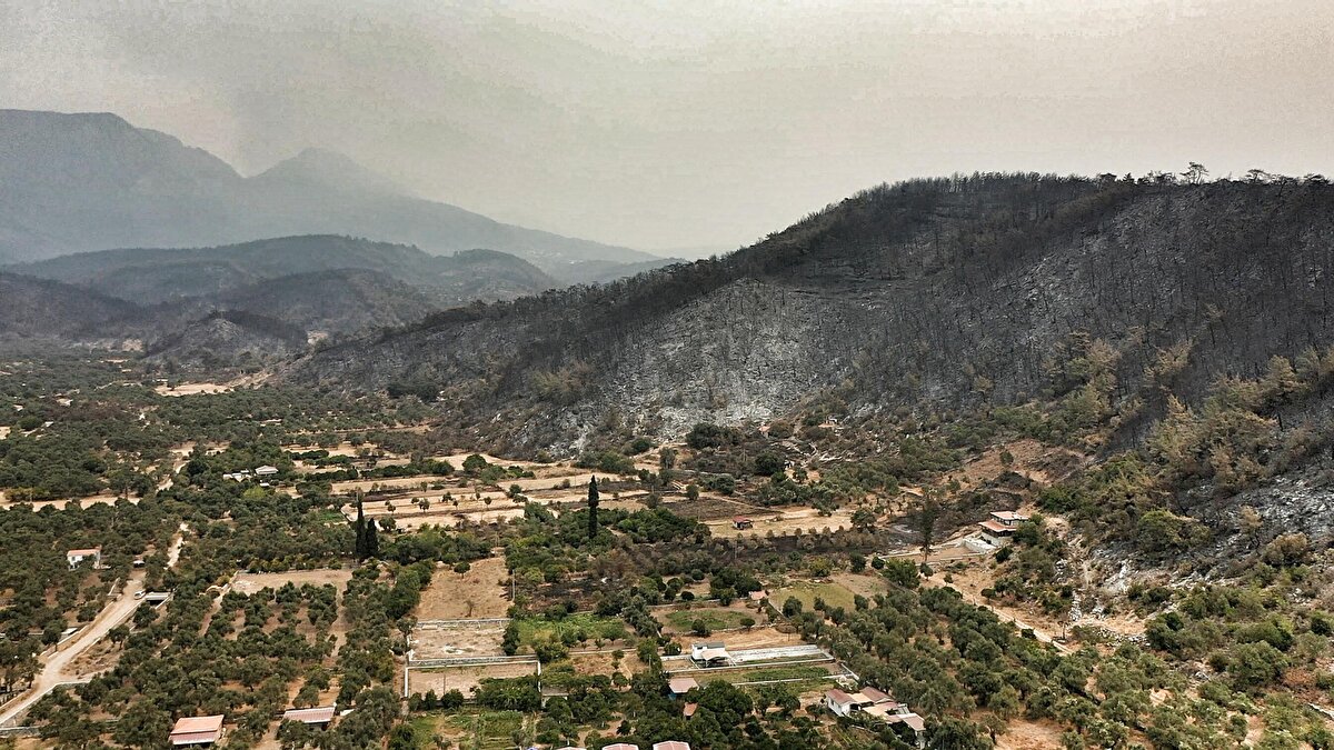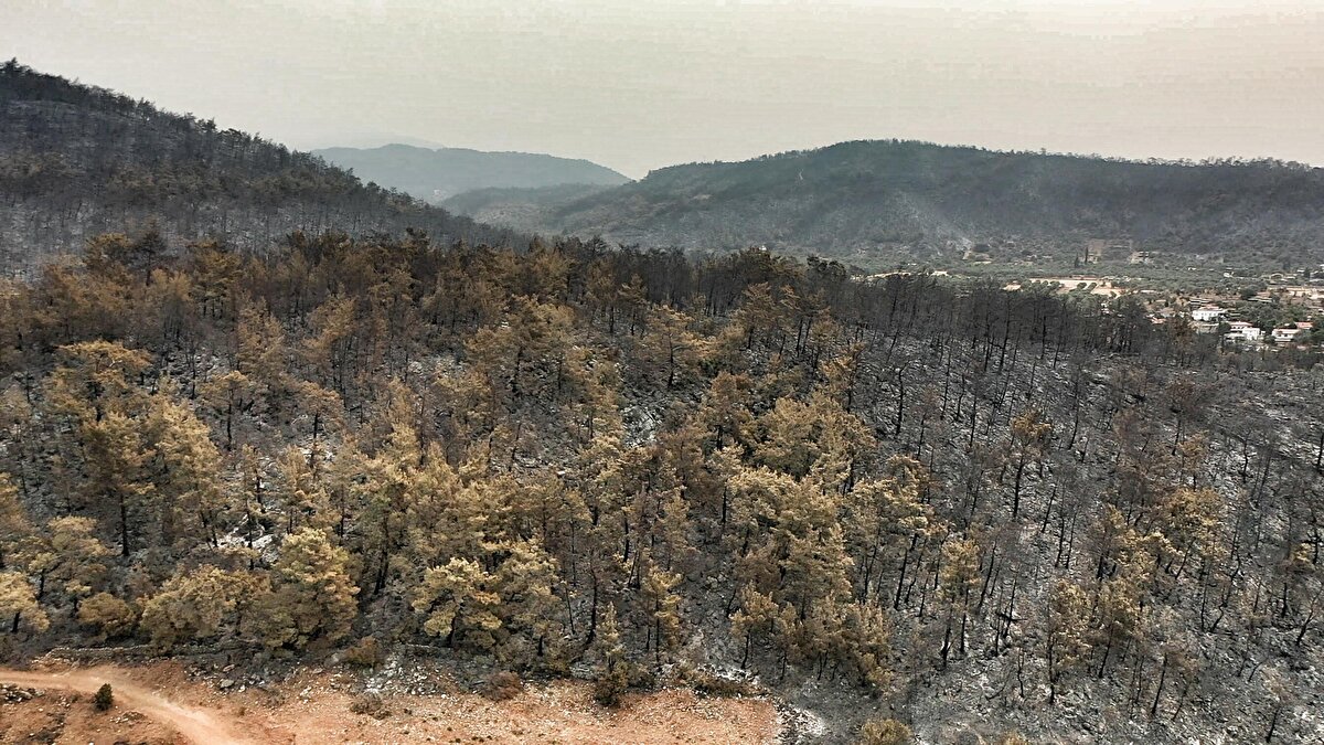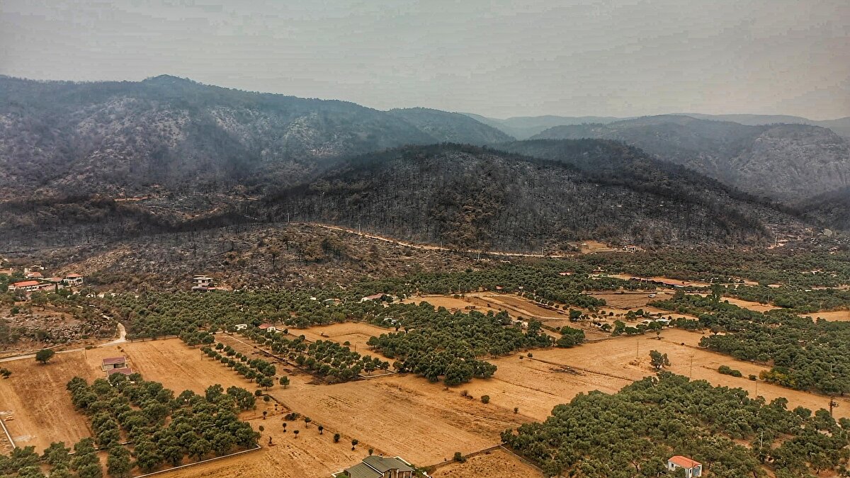 Muğla'nın Bodrum ve Milas ilçelerinde birçok mahallede etkili olan orman yangınlarında yüzlerce hektarlık alan küle döndü, ormandaki canlılar yaşamını yitirdi. Yangının bölgeye vermiş olduğu zarar drone ile havadan görüntülendi.