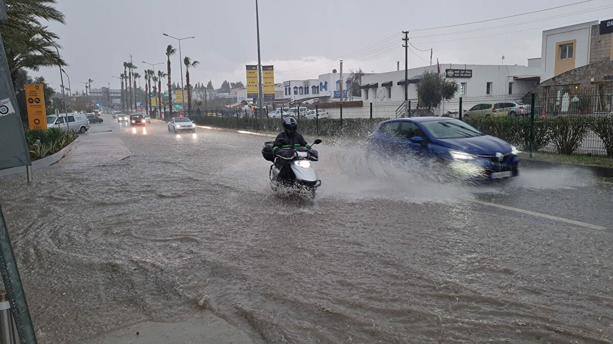 Meteoroloji 4'üncü Bölge Müdürlüğü Muğla ve çevresi için sağanak uyarısı yaptı. Bodrum'da öğle saatlerinden itibaren kuvvetli sağanak etkili oldu.