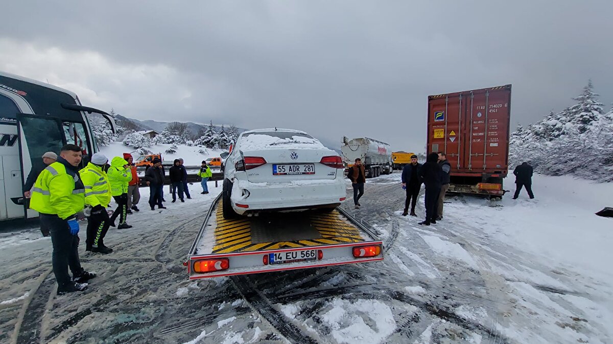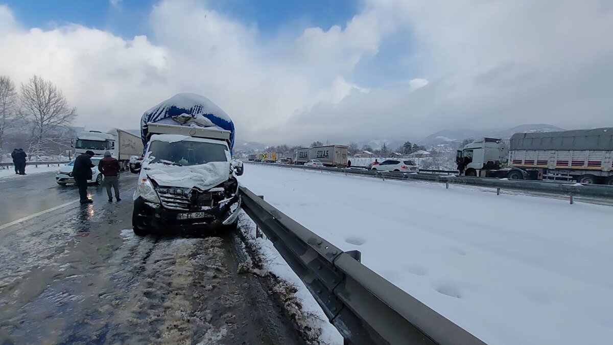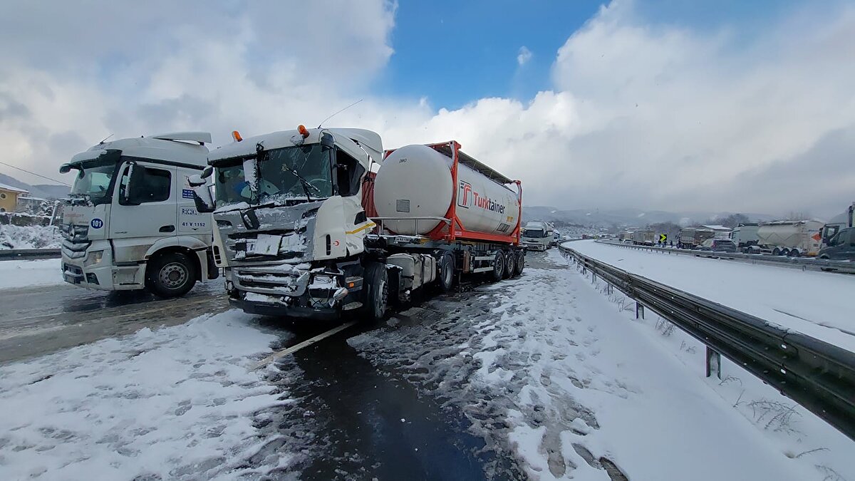 Yoğun kar yağışı sırasında araçların kayması sonucu İstanbul ve Ankara istikametlerinde zincirleme trafik kazaları meydana geldi.