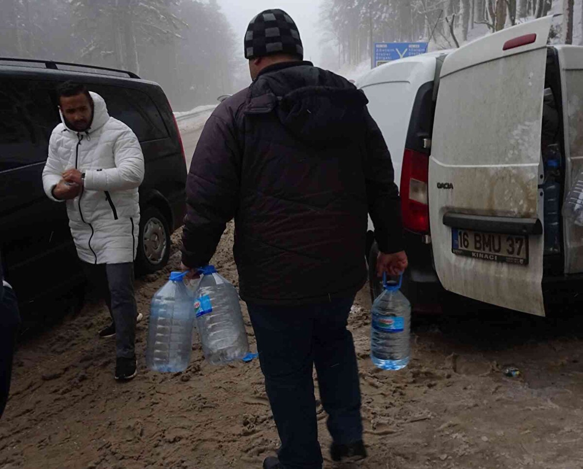 Uludağ'da oteller bölgesinde çeşmeden su doldurmak isteyen vatandaşlar dondurucu soğukta saatlerce sıra bekliyor.