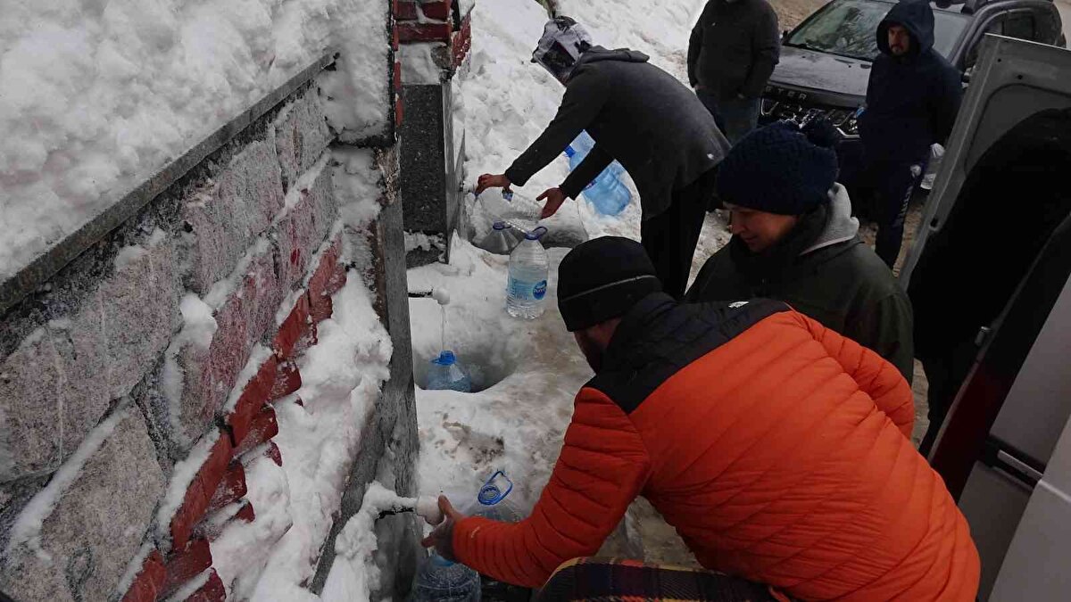Bu çeşmeden su alabilmek için -10 derecede saatlerce bekliyorlar