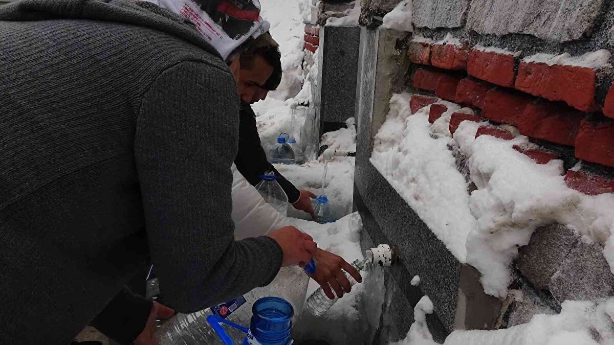 Su dolduranlar soğuk havaya rağmen bu sudan vazgeçmiyor. 1 metreyi geçkin karın olduğu bölgede dondurucu soğuk etkili oluyor.