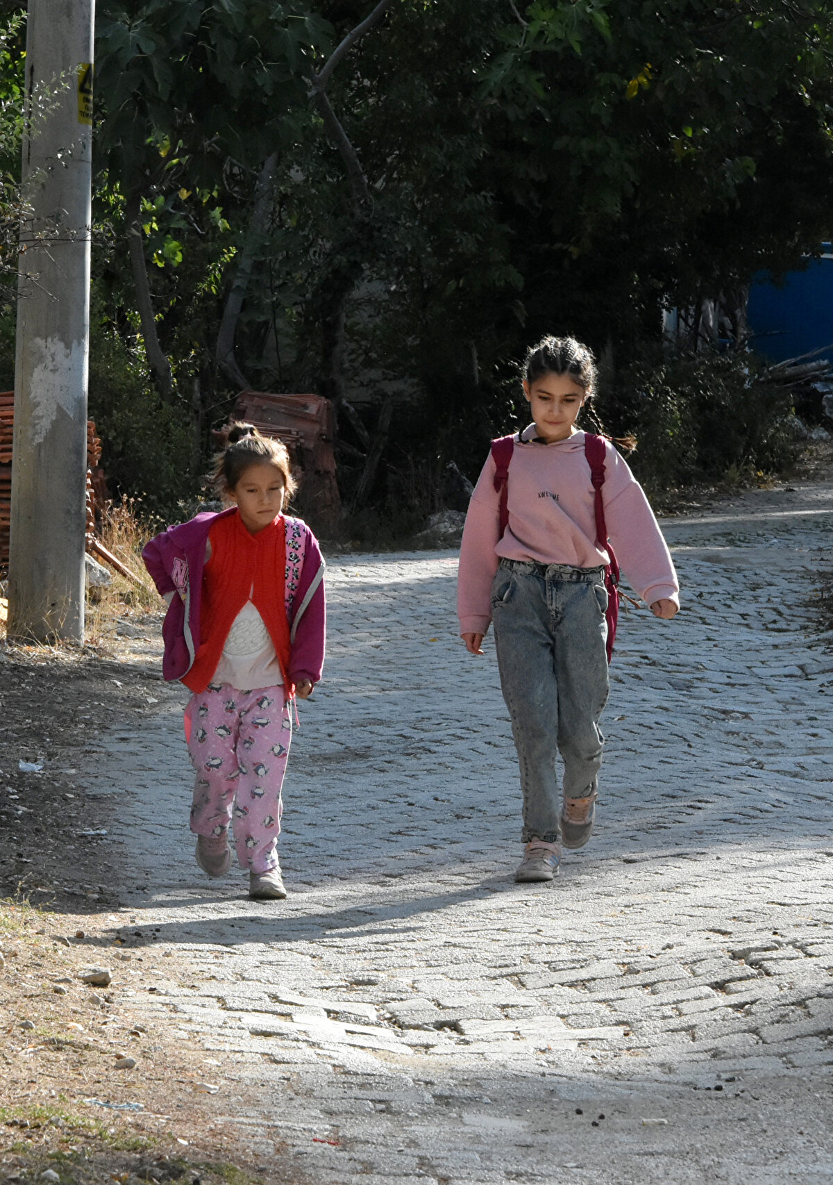 Teneffüslerde ise bahçedeki oyun parkında oynayan Fatma Gülsüm ve Nisanur, okula beraber gelip, gidiyor.
