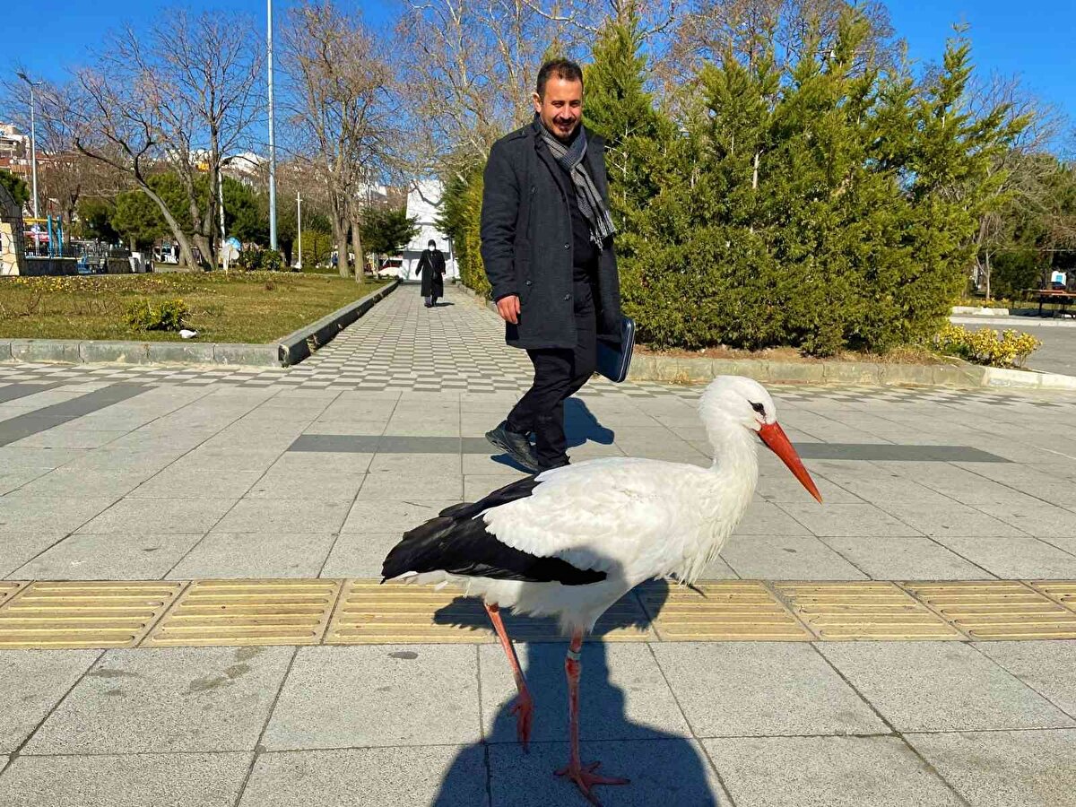 Yaklaşık 9 ay önce sürüsünden ayrılarak Tekirdağ'a konan leylek, uçmayı unuttu. Yolda ve sokaklarda vatandaşların yoğun ilgisiyle karşılaşan leyleğin uçmaya niyeti yok.
