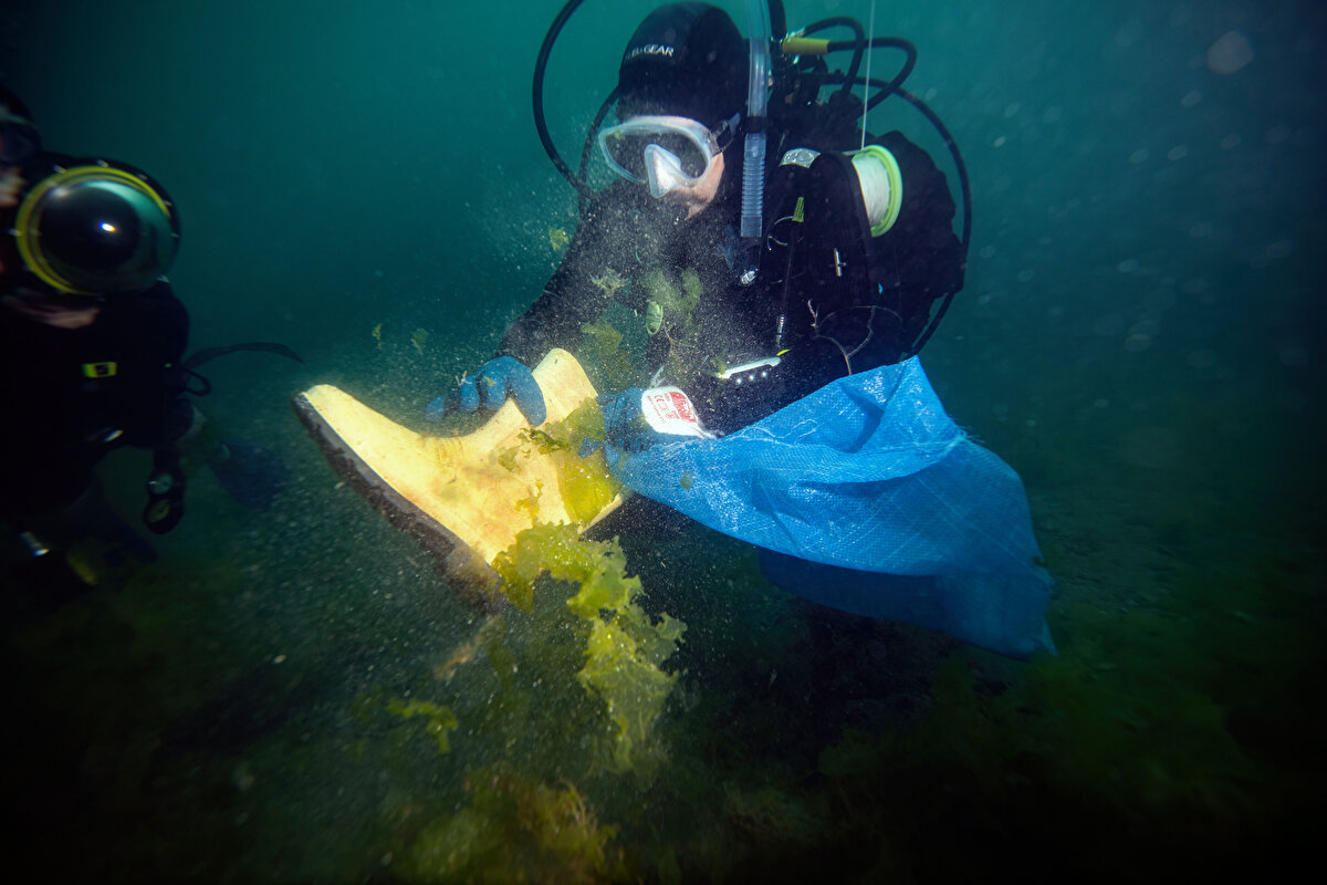 Beylikdüzü Sualtı Sporları Dünya Rekortmenleri Kulübü üyeleri, Beylikdüzü'ndeki Gürpınar Sahili'nde Çevre Haftası etkinlikleri kapsamında tüplü dalış yaparak deniz temizliği gerçekleştirdi. Denizin altında 3 grup halinde temizlik çalışması yapan kulüp üyeleri, yaklaşık 1 saat süren dalış sonunda denizden ağ, çizme, naylon poşet, tıbbi atık, kablo ve şişe çıkardı.