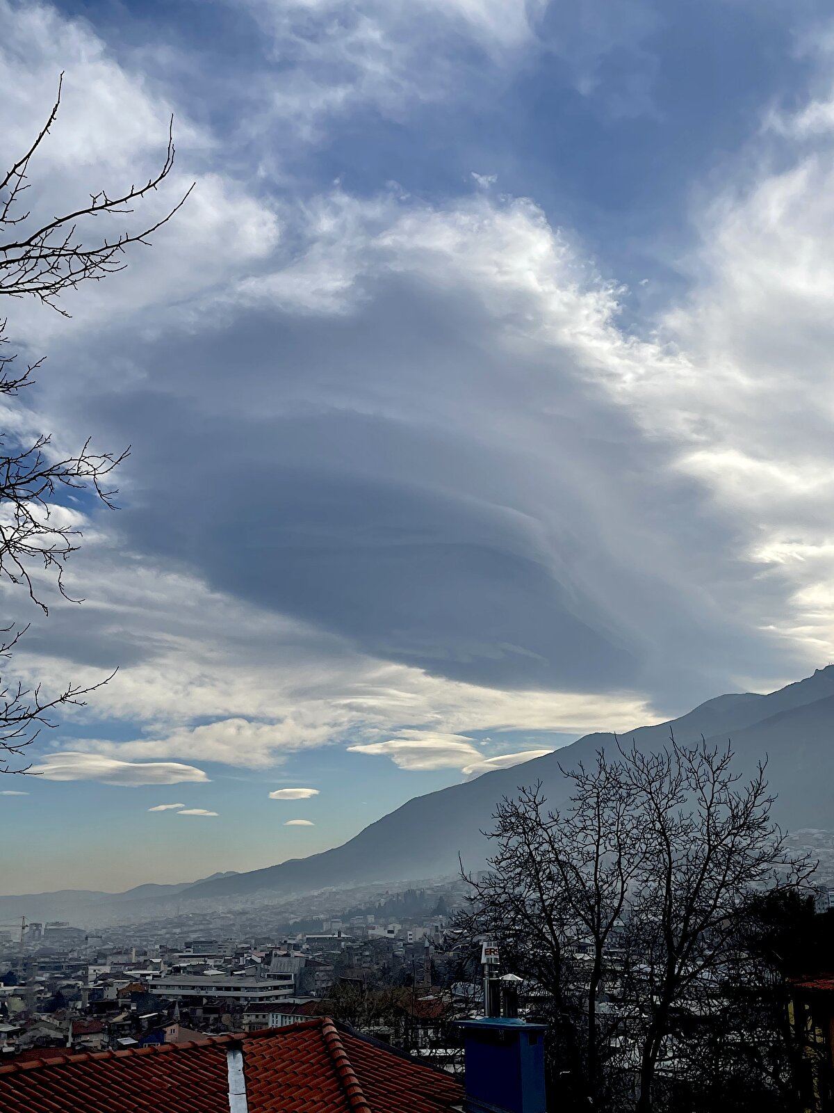 Bursa semalarında iki gün aradan sonra yeniden mercek bulutu oluştu. Kent merkezinden bakıldığında Uludağ'ın silüetiyle bütünleşen bulutun, öncekine göre daha büyük olması dikkati çekti.