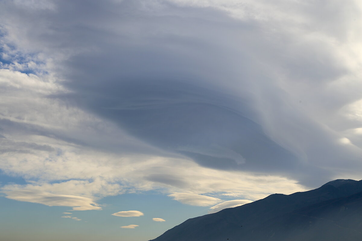 Doğa olayı hortumu andıran büyük bulutun çevresinde küçük boyutlarda mercek bulutları da gözlemlendi.