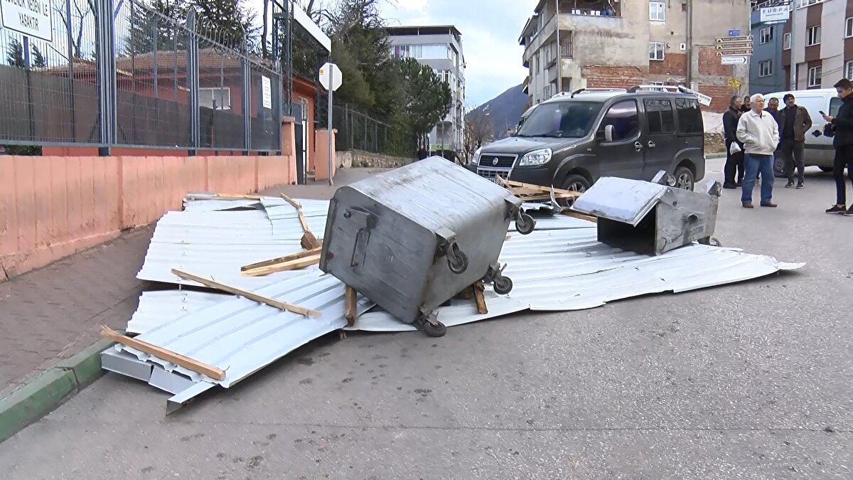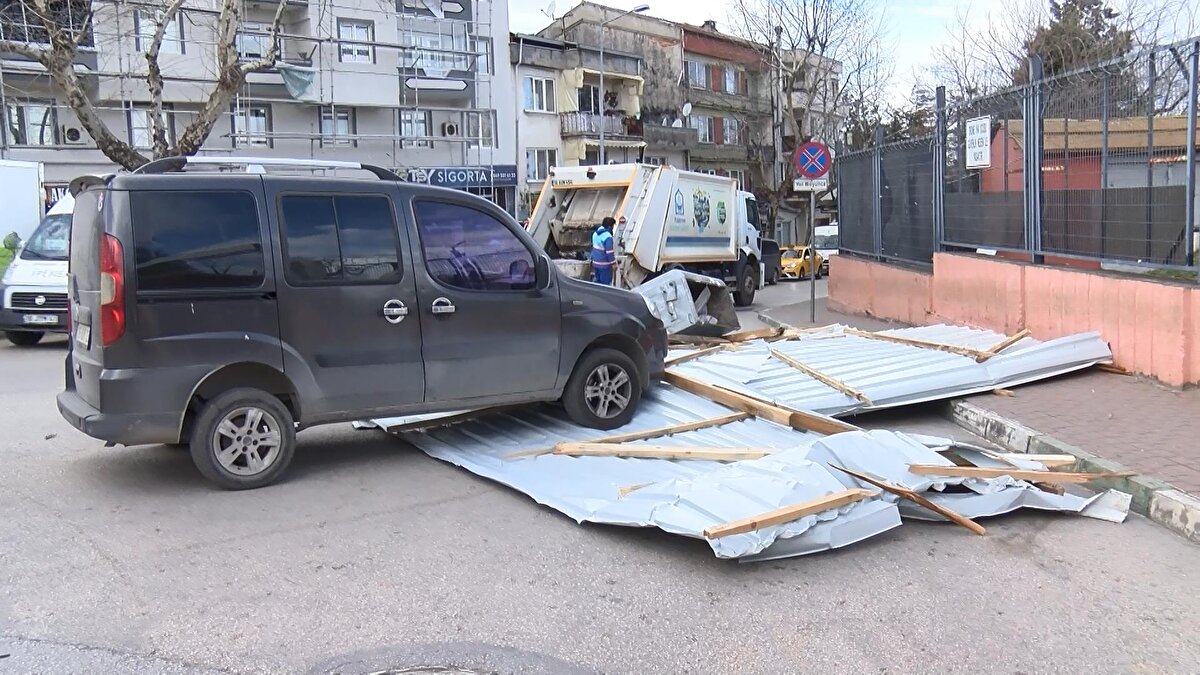 Yıldırım ilçesi Piremir Mahallesi Teleferik Caddesi'nde, 3 katlı binanın çatısındaki sac uçtu. Caddeye düşen sac tedirginliğe yol açtı. Çevredekiler, tekrar uçmaması için sacın üzerine otomobillerini park edip önlem aldı.