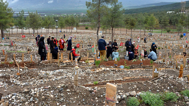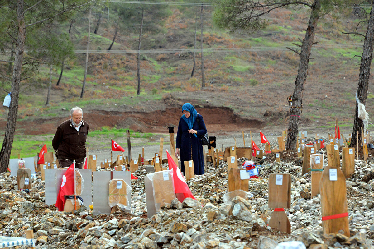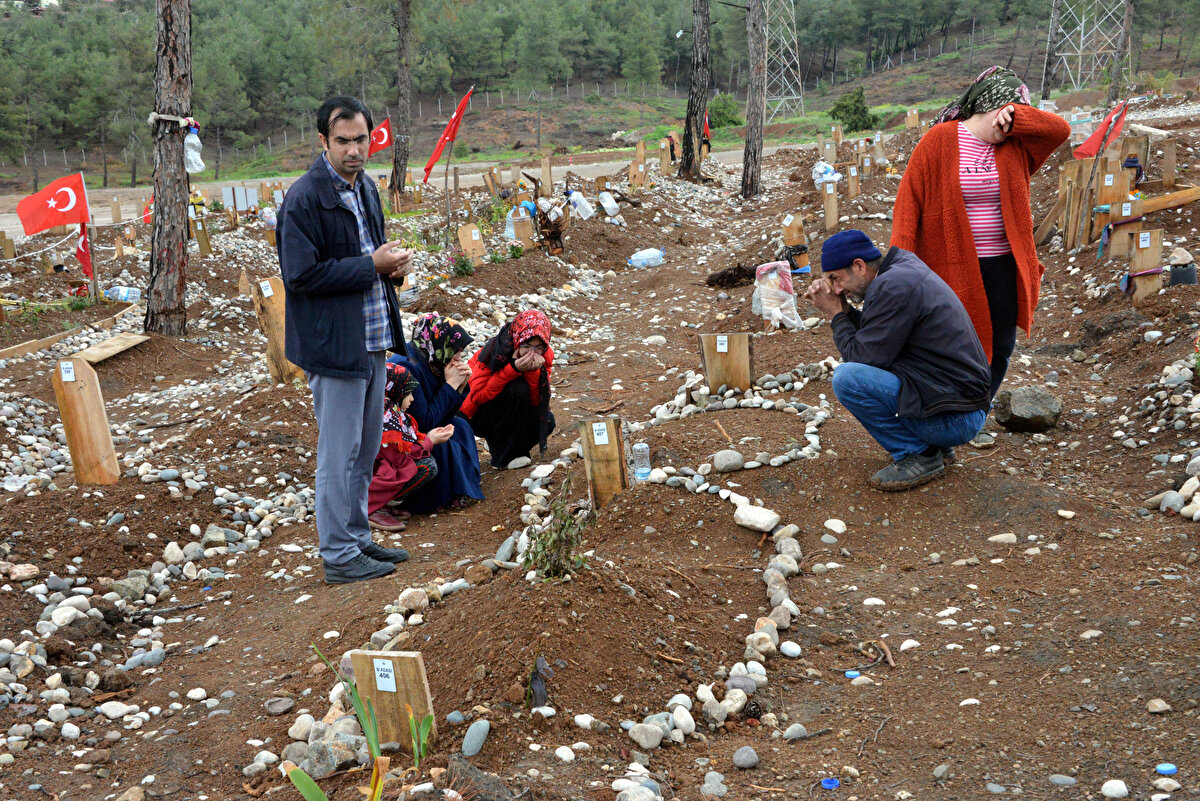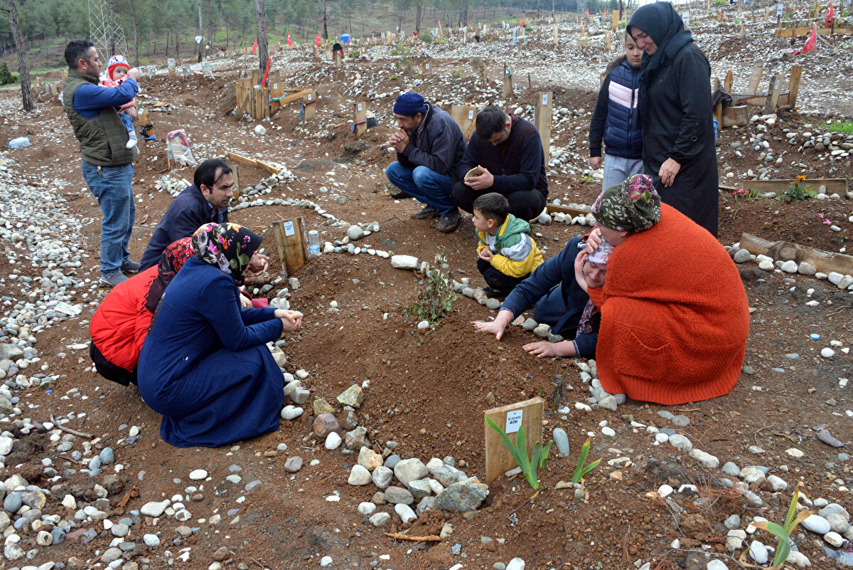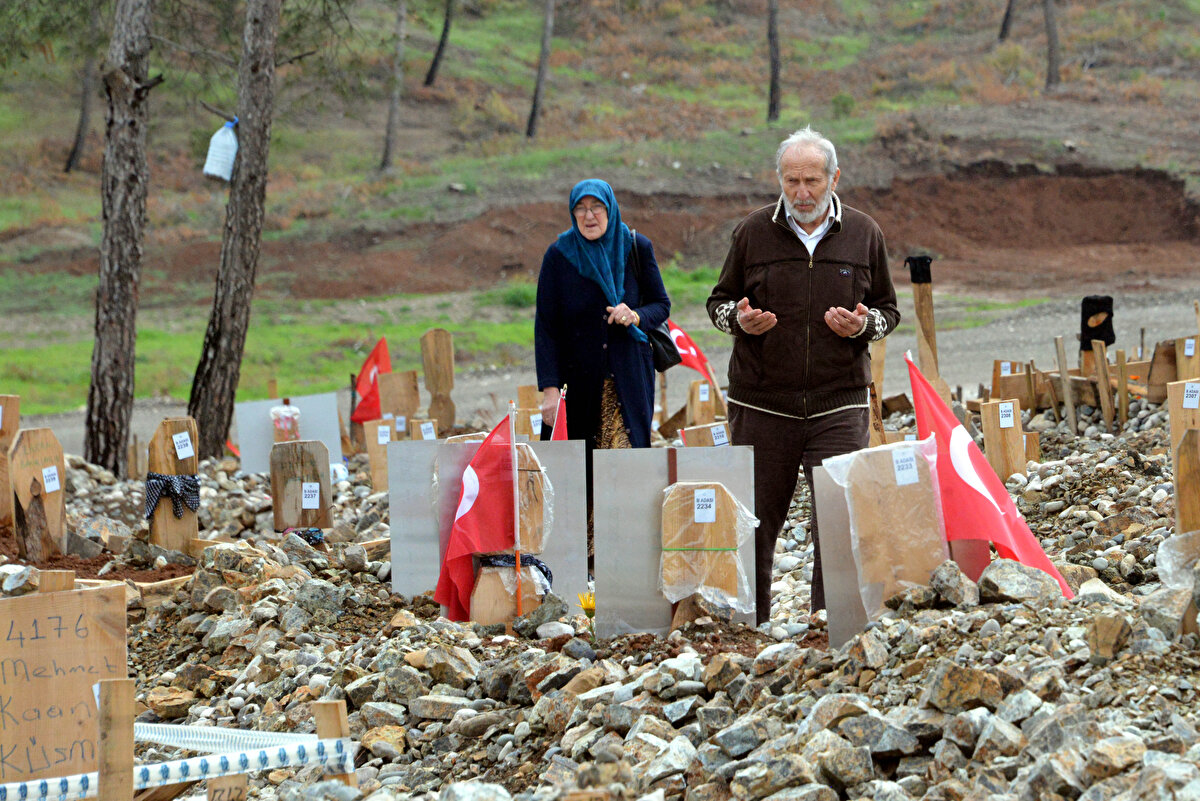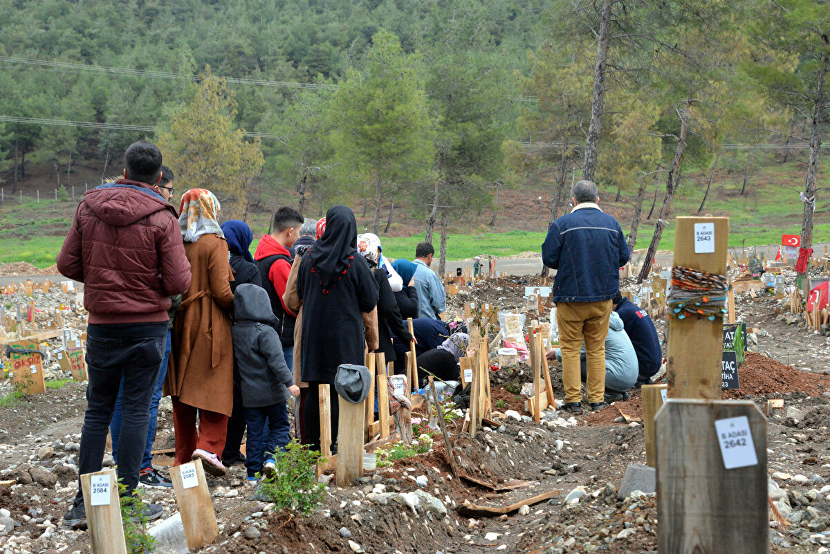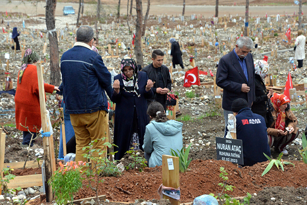 Kahramanmaraş merkezli depremlerde enkaz altında kalarak hayatını kaybeden vatandaşların yakınları, bayram namazı sonrası mezarlığa ziyarette bulundu.