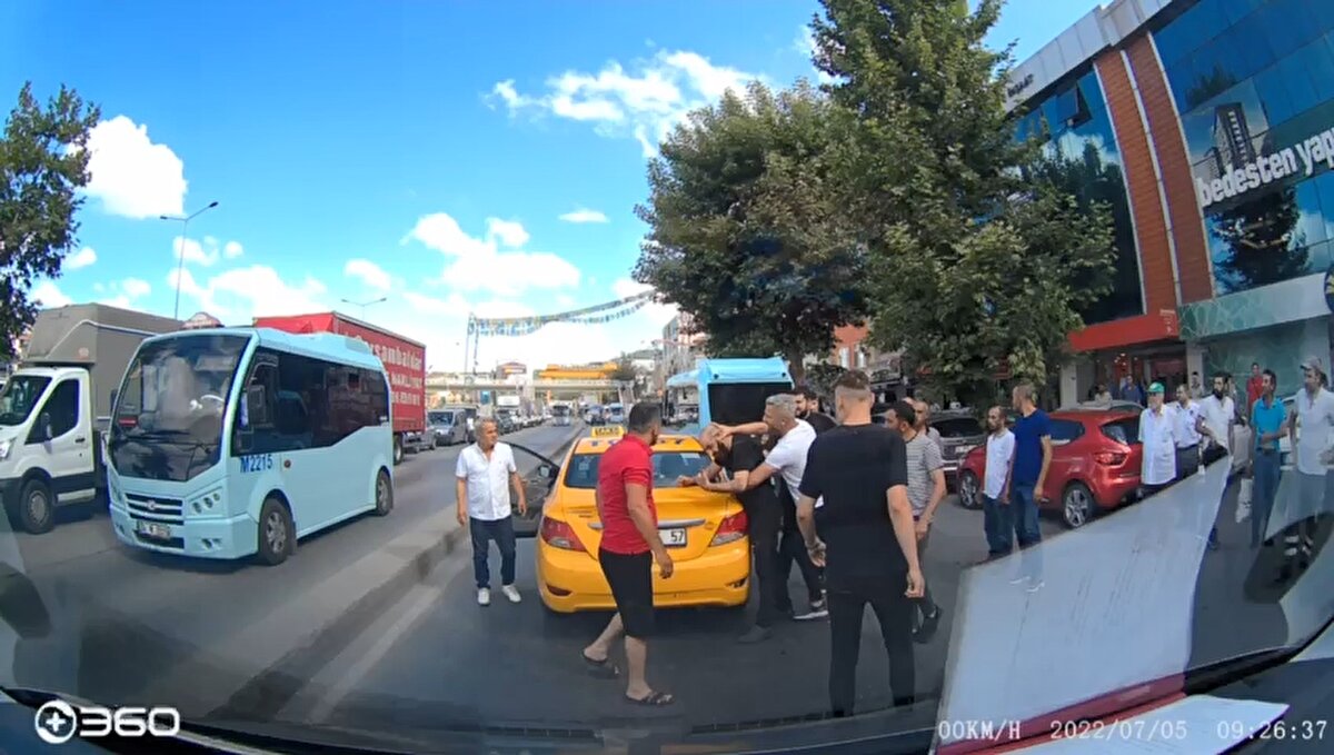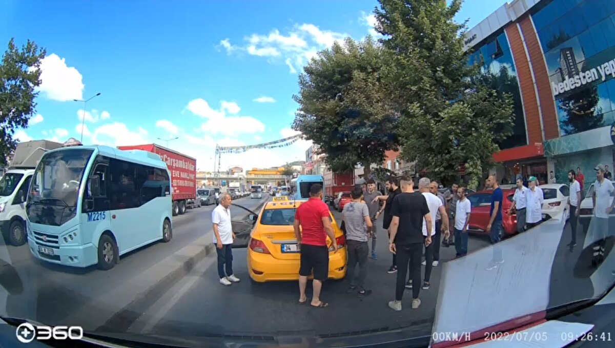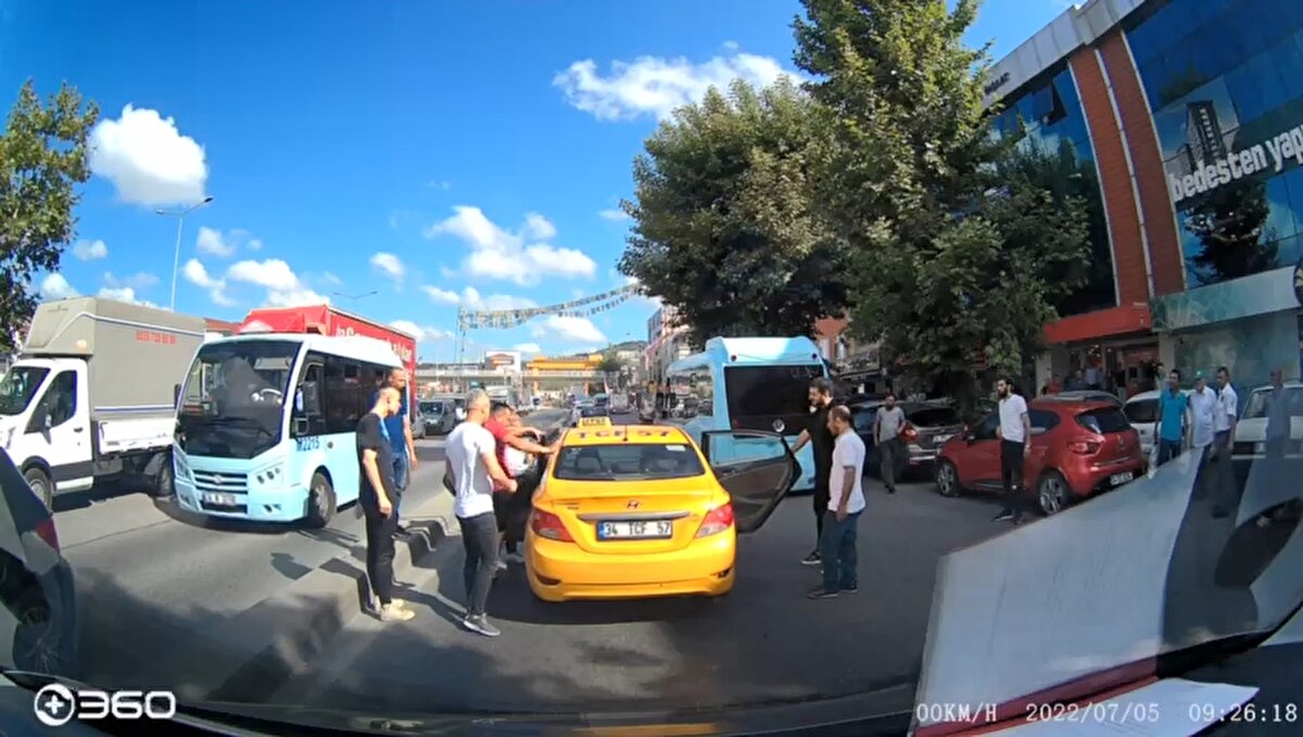 Pendik'te kendisini darbeden bir erkekten kaçan kadın, yoğun trafikte bir taksiye binerek kurtulmaya çalıştı. Arkasından taksiye binip kadını hırpalamaya devam eden saldırgana, çevredekiler müdahale etti. Tekme tokat dövülen saldırgan kaçarak uzaklaştı. Olayın görüntüleri trafikteki bir sürücünün araç kamerasıyla kaydedildi.
