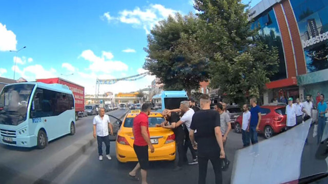 Kadın bu sırada trafikte bekleyen taksiye binerek kaçmaya çalıştı. Saldırgan da kadının arkasından yetişip aynı taksiye bindi. Taksi içinde de kadına saldıran kişiye bir kez daha müdahale edildi. Tekme ve yumruklarla dövülen kişi taksiden inerek uzaklaştı.