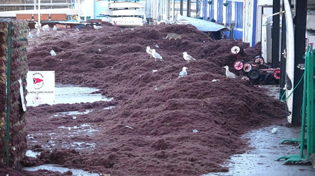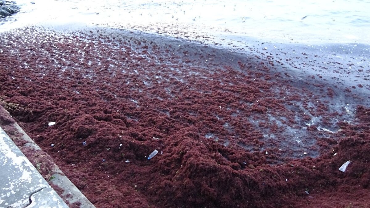 Caddebostan sahilini kırmızı yosunlar kapladı