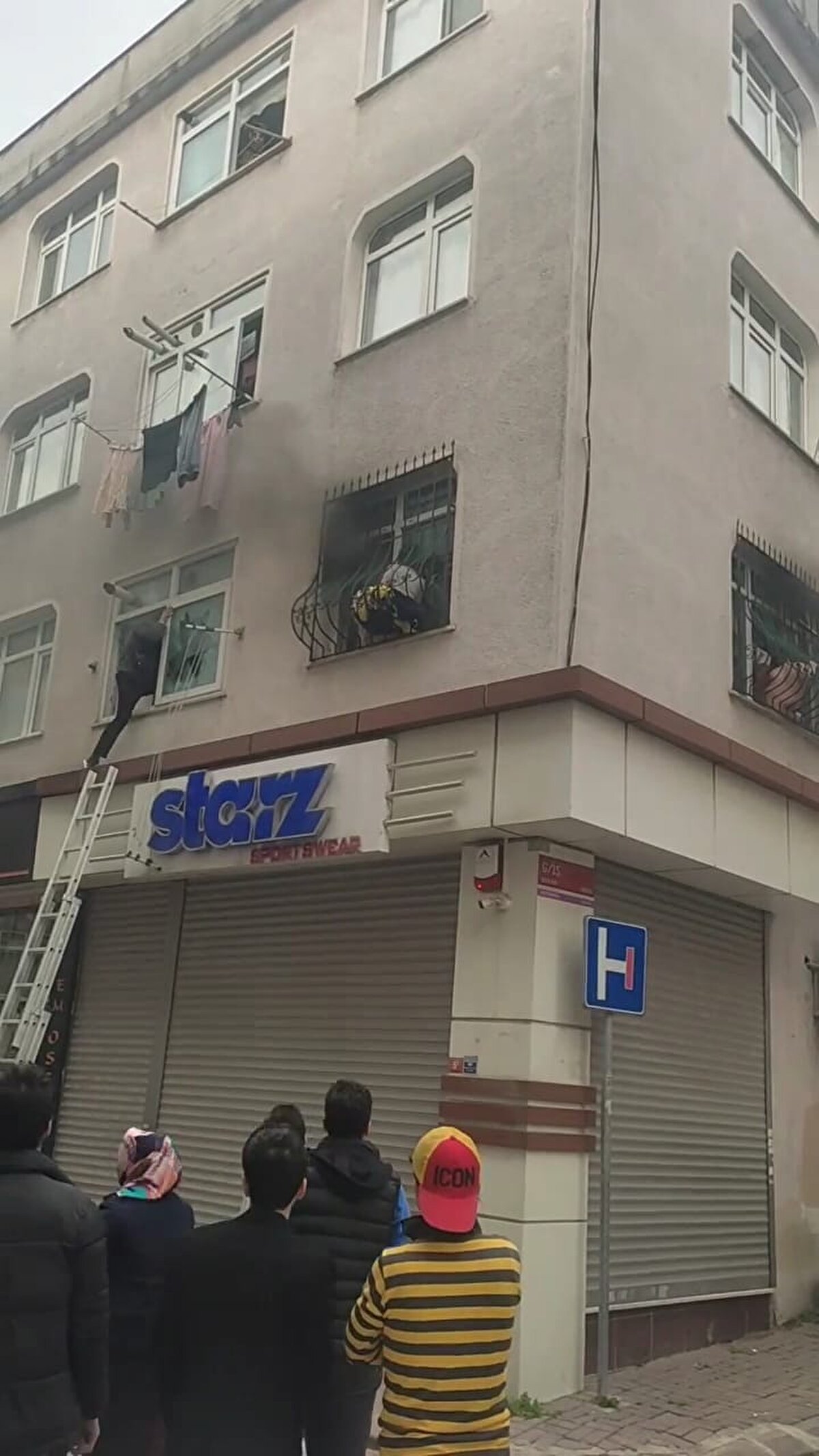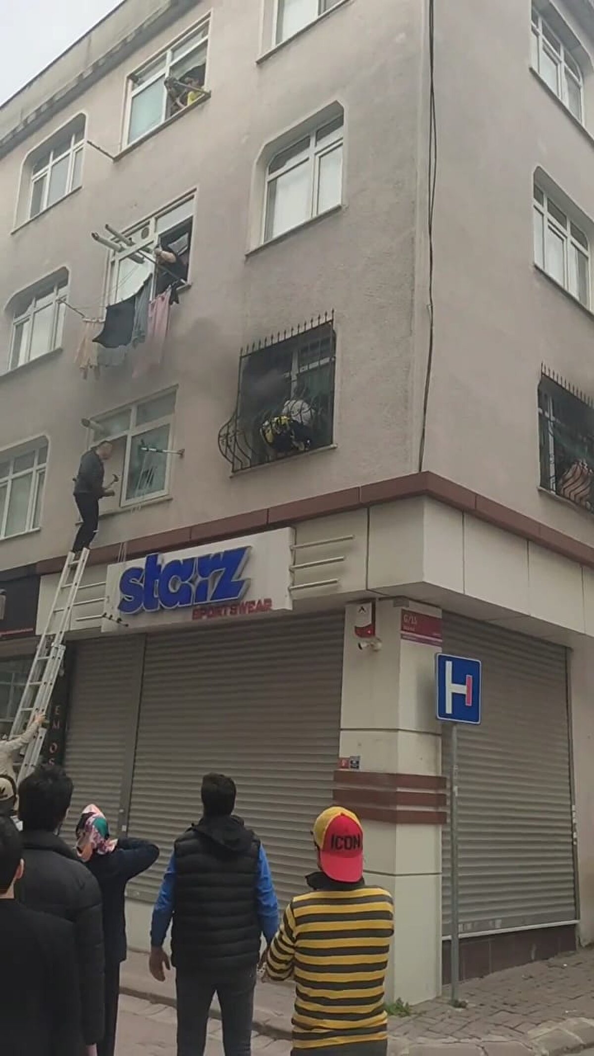 Çevredeki esnaf ve komşular yardıma koştu. Ancak kapı açılamayınca birinci katın pencere ve balkonuna ulaşılmaya çalışıldı. Kimi merdiven uzattı kimi ise pencere korkuluklarına basarak birinci kata tırmandı.
