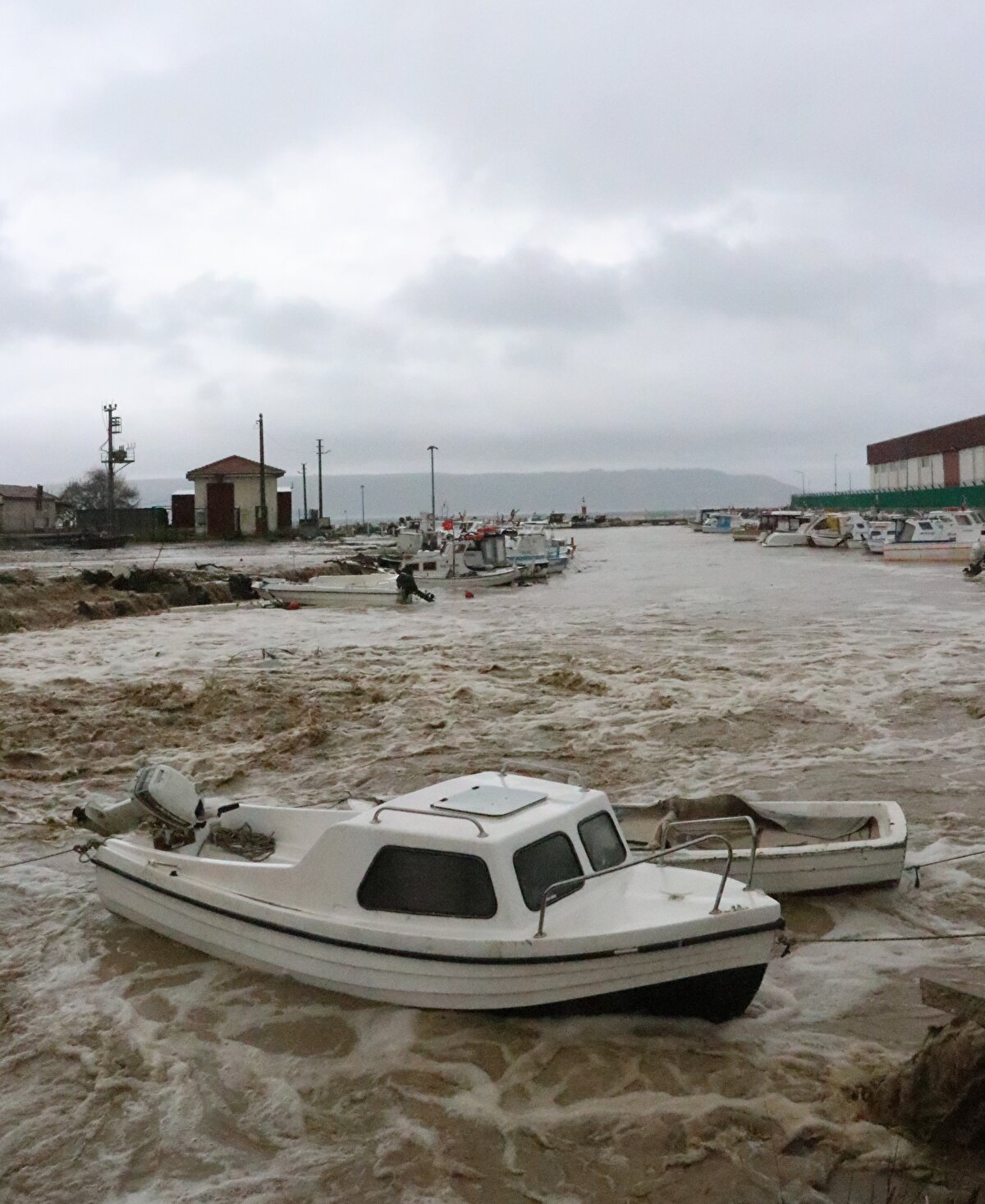 Teknelerinin durumuna bakmak için barınağa gelen bazı balıkçılar, su alan teknelerini temizlemeye çalıştı.