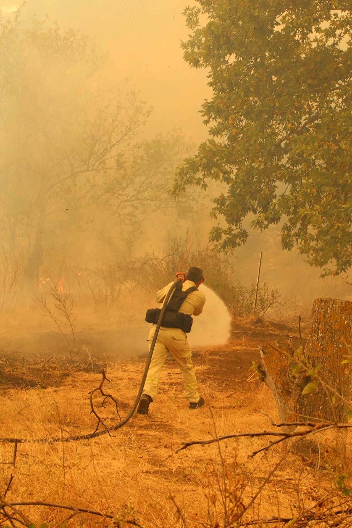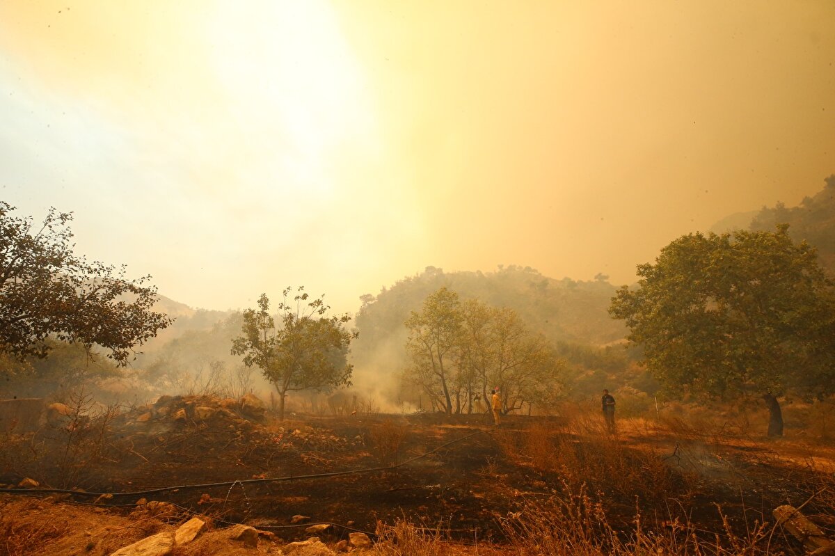 Bazı hayvanların yangından etkilendiği bölgede, Kayadere köyünden vatandaşların tahliyesi için jandarma ekipleri gözetiminde çalışma yürütülüyor. Büyükbaş ve küçükbaş hayvanlar, güvenli alanlara alınıyor.