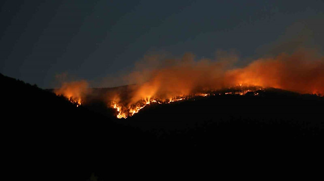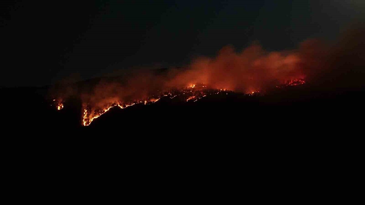 Çankırı'nın Ilgaz ilçesinde ormanlık alanda çıkan yangın, dron ile görüntülendi. Ekiplerin yangına müdahalesi sürüyor.