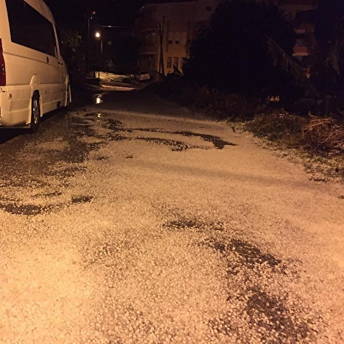 İncekum Mahallesi’nde sabaha karşı 05.30 sıralarında başlayan yağmur, yerini şiddetli doluya bıraktı.