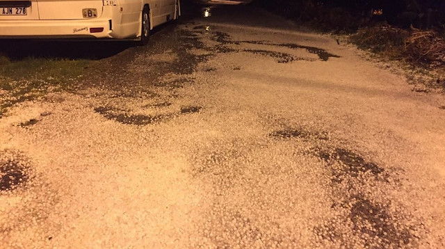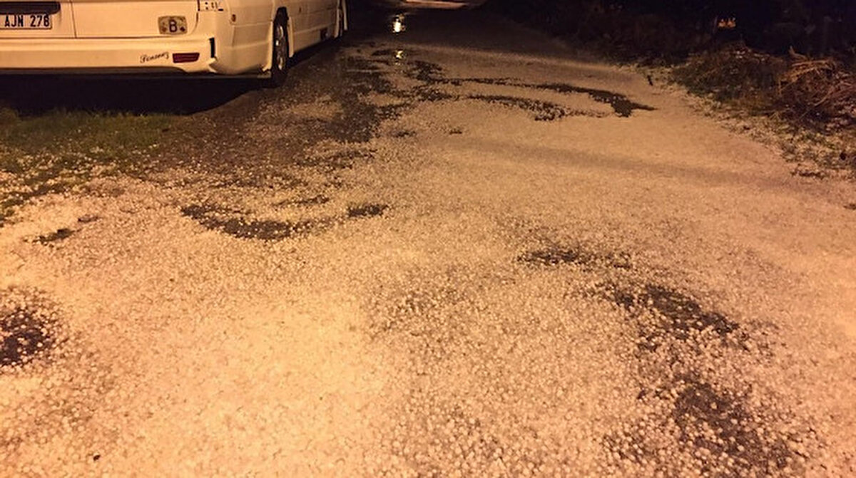 Ceviz büyüklüğünde dolu yağdı: Sokaklar bembeyaz oldu