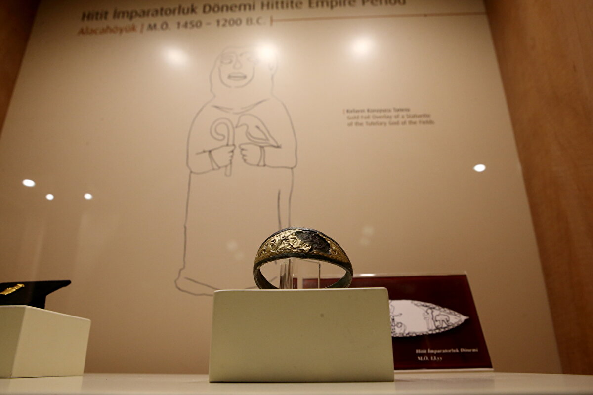 Çorum'da çiftçinin tarlasında bulduğu, üzerinde bir Hitit kralının tanrıya yaptığı libasyonun (sunu) tasvir edildiği yaklaşık 3 bin 300 yıllık bilezik, Çorum Müzesi'nde sergilenmeye başlandı.