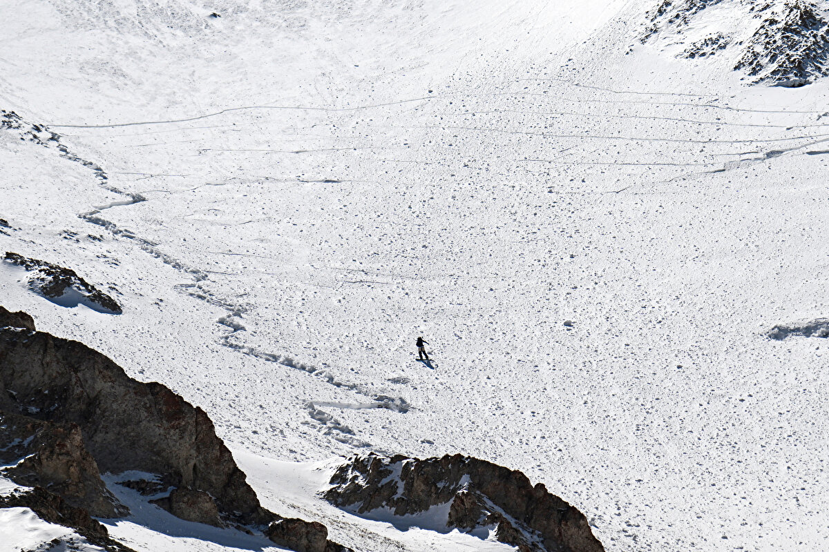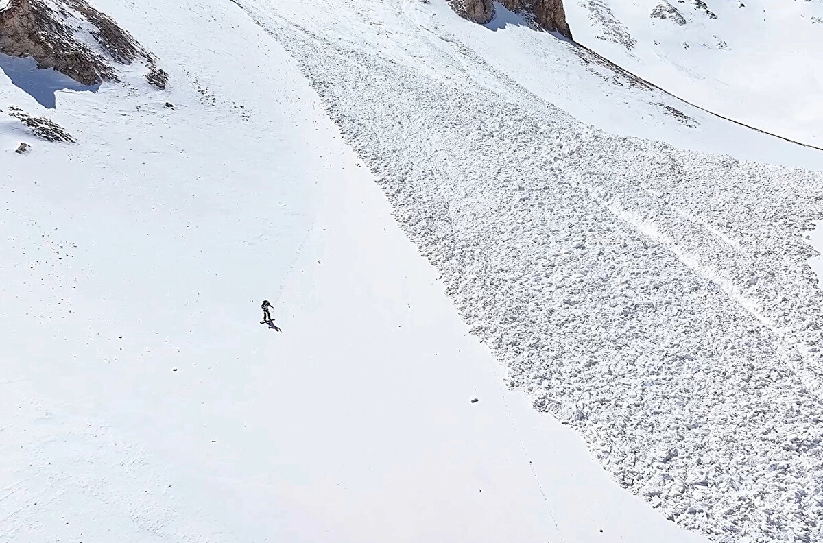 Van'ın Gevaş ilçesinde Artos Dağı'nda snowboard yaparken çığın altında kalan kayakçı Şahabettin Gün, kendi imkanlarıyla kar yığınından kurtulmayı başardı. O anlar drone ile görüntülendi. İşte çığın düştüğü ve kayakçının kurtulduğu o anlar...