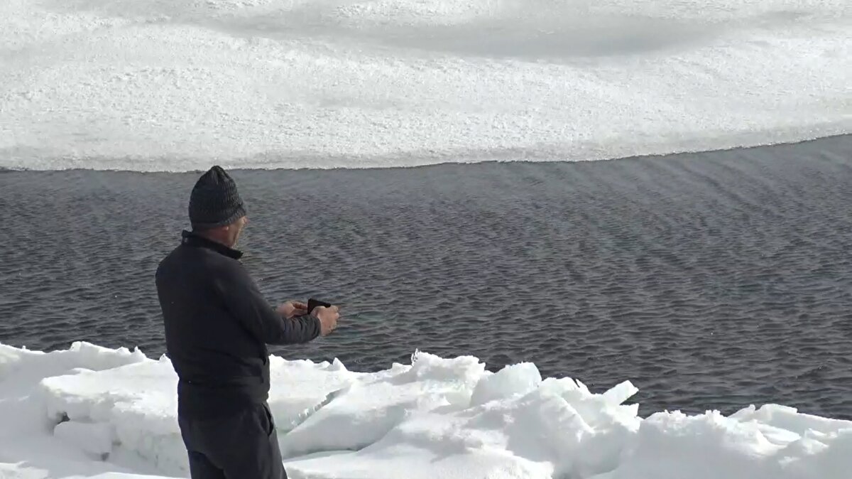 İlginç görüntülerin oluştuğu gölün fotoğrafını çekmek için bölgeye gelen Hacı Yıldız, "Bu sene geç gelen kışla birlikte, erken giden bir kışa şahit oluyoruz. Buralarda normalde bu zamanda festival yapılırdı, kızaklar kayardı, arabalar rafting yapardı ama bu sene erkenden çözüldü. Sadece kıyı tarafındaki buzlar sağlam" diye konuştu.
