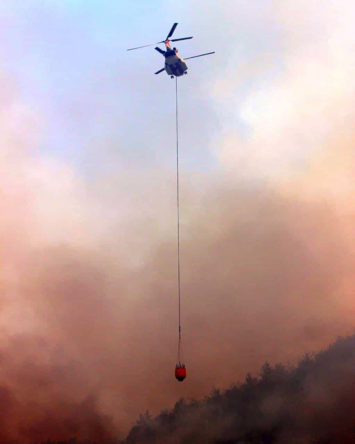 Geren mevkiinde akşam saatlerinde hafifleyen yangın, sabah rüzgarın da etkisiyle bir anda kuvvetlendi. Arazinin sarp ve kayalık olması ekiplerin karadan müdahalesini zorlaştırırken, havanın aydınlanmasıyla birlikte helikopterlerle havadan müdahale başladı.