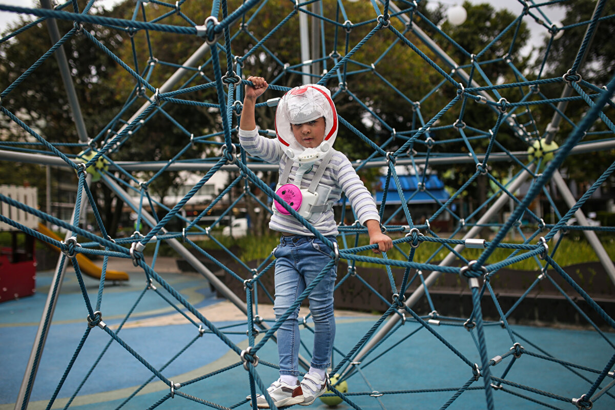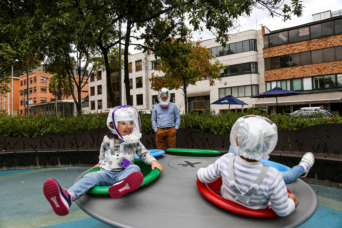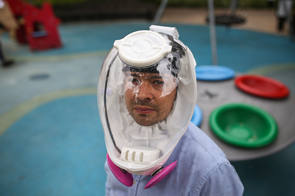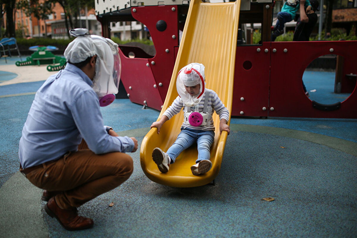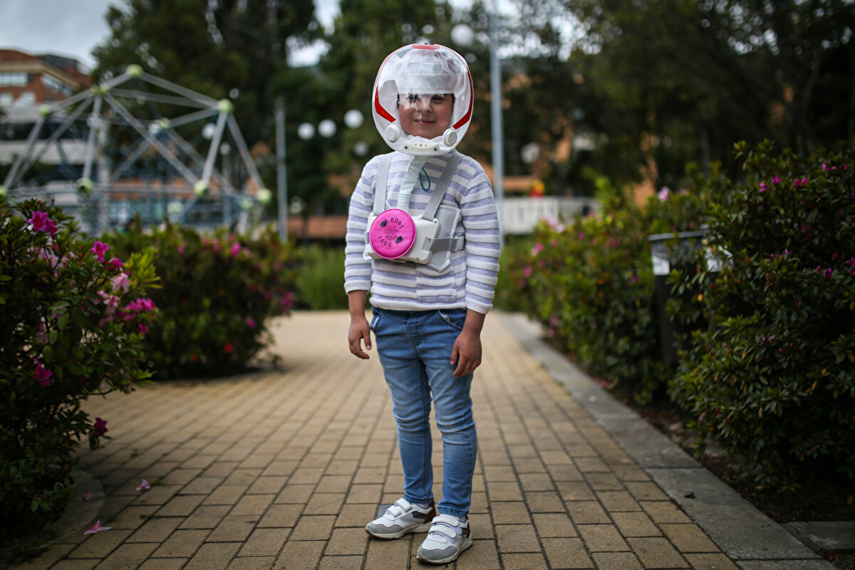 Kolombiya'nın başkenti Bogota'da, mühendis girişimciler koronavirüs (COVID-19) ile mücadele kapsamında, yüzü bir balon şeklinde kaplayarak nefes almayı kolaylaştıracak yeni bir kask üretti.