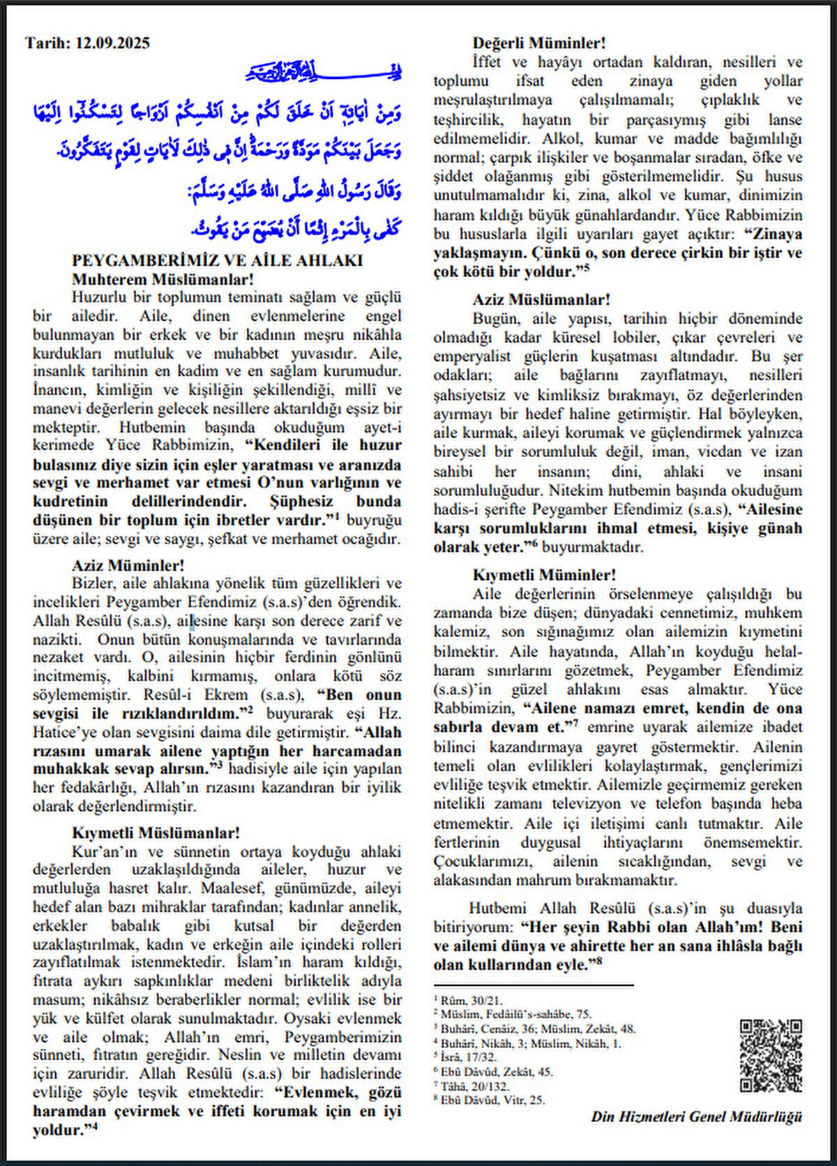 PDF olarak indirebilirsiniz. İşte 12 Eylül 2025 Cuma Hutbesi tam metni.