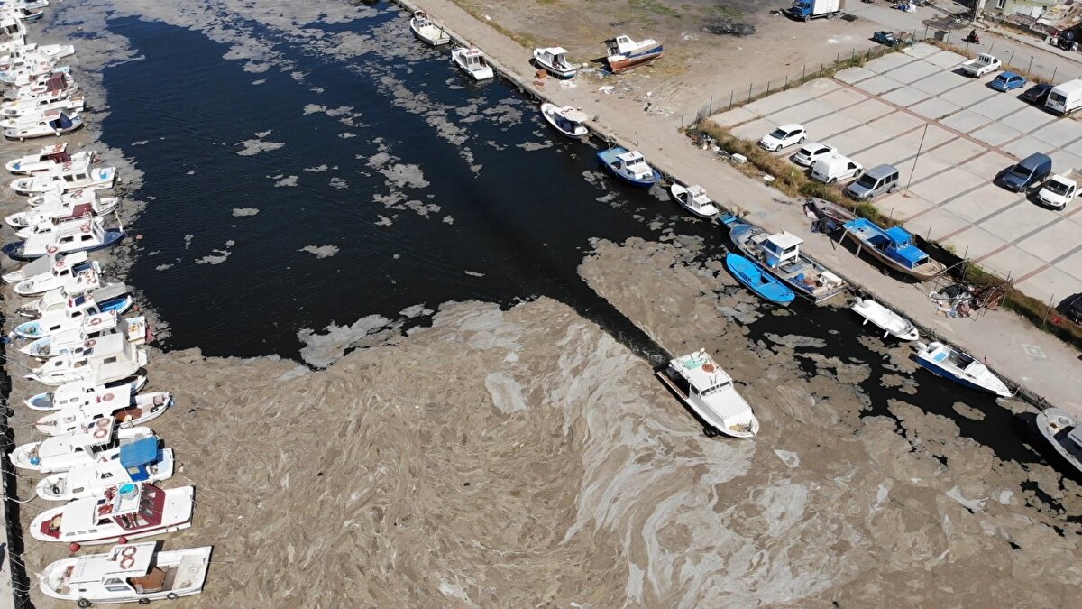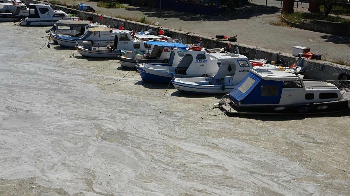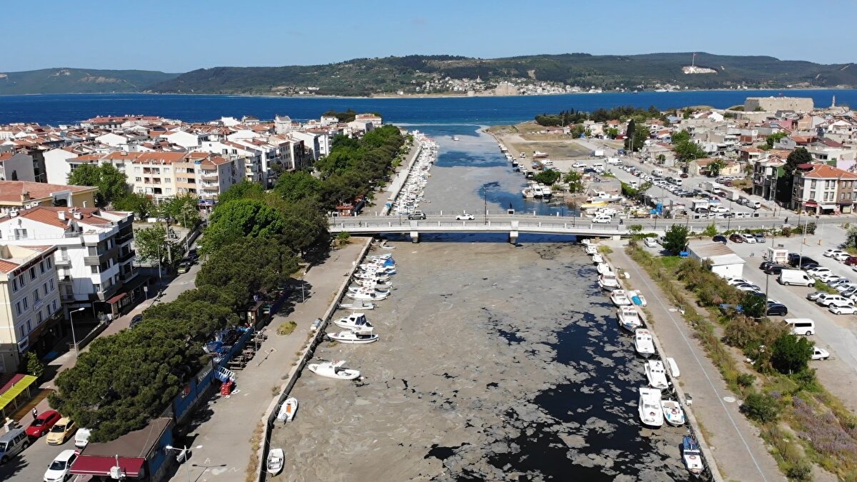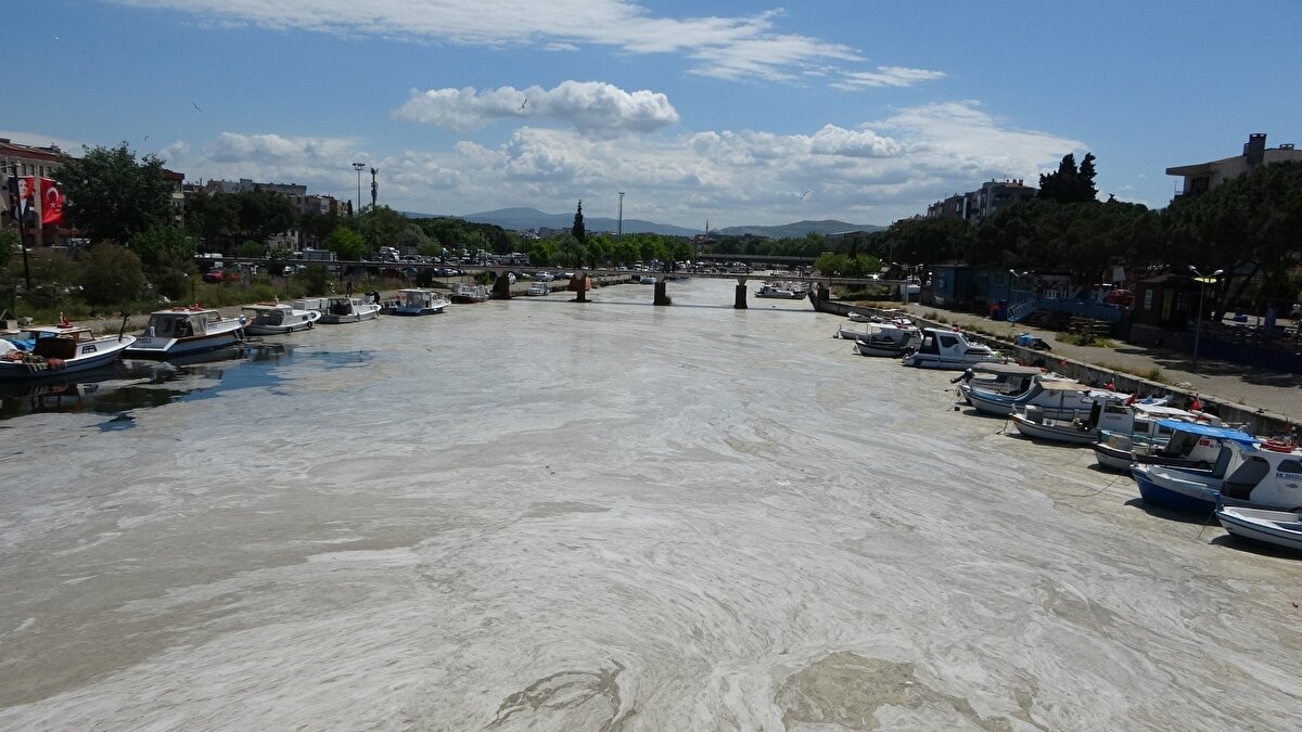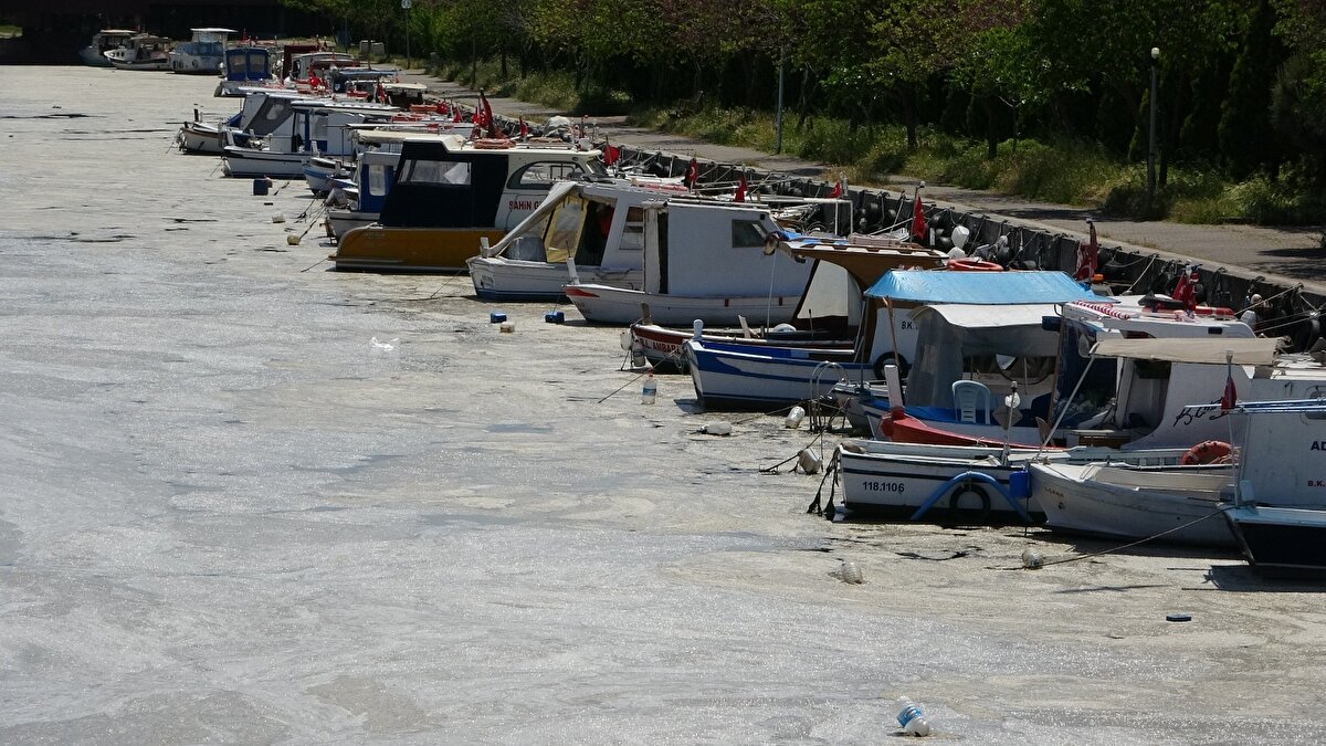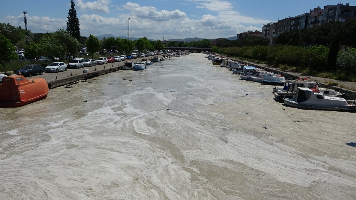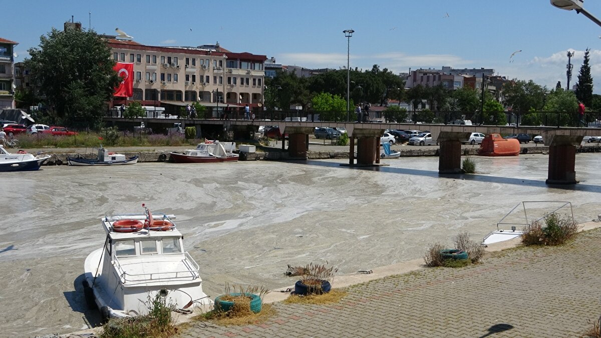 Marmara Denizi ve Çanakkale Boğazı'nda yaklaşık 3,5 aydır görülen deniz salyası etkisini sürdürmeye devam ediyor. Çanakkale'de kenti ortadan ikiye bölen Sarıçay, müsilaja (deniz salyasına) teslim oldu. Balıkçı barınağı olarak da kullanılan çaydaki yapışkan tabaka üzerinde bulunan çöpler görenleri tedirgin ediyor.