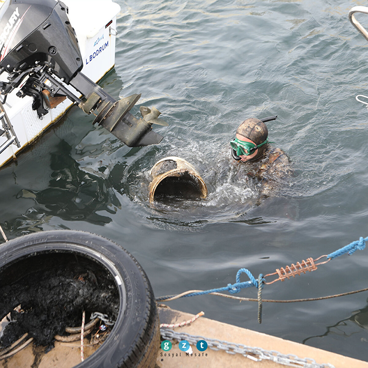 Muğla'nın Bodrum ilçesinde düzenlenen deniz dibi temizliği etkinliğinde, 200 kilogram atık çıkarıldı. Ekipteki 5 dalgıç, yaklaşık iki saat süren çalışmada denizden aralarında araç lastiği, plastik ve cam atıkların da olduğu 200 kilogram atık çıkardı. Çalışmaları sahilden bazı vatandaşlar da izledi
