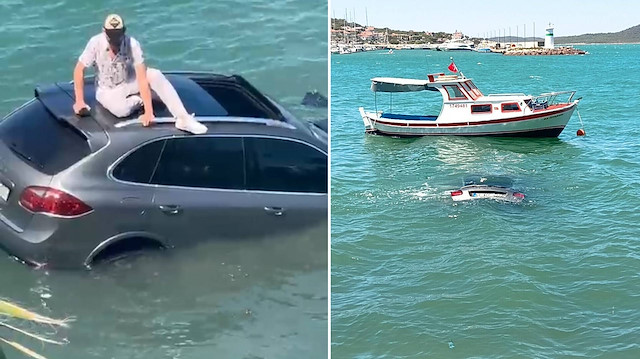 Balıkesir'in Ayvalık ilçesinde sahil yolunda denize uçan otomobilin sürücüsü sürücü, kendi imkanlarıyla içinden çıktığı aracının üzerine oturup yardım bekledi. O anlar cep telefonuyla görüntülenirken, sürücü çevredeki balıkçılar ile belediye ekipleri tarafından kurtarıldı.