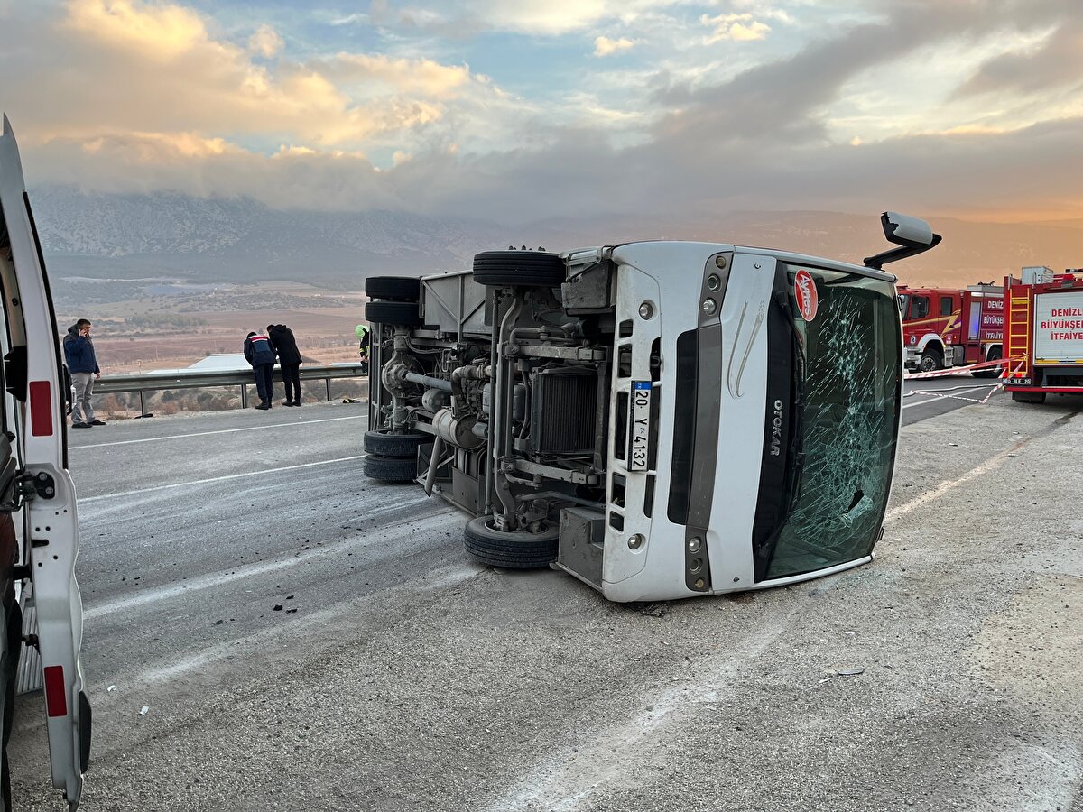 Denizli'de servis midibüsü devrildi: İki kişi öldü, 15 kişi yaralandı