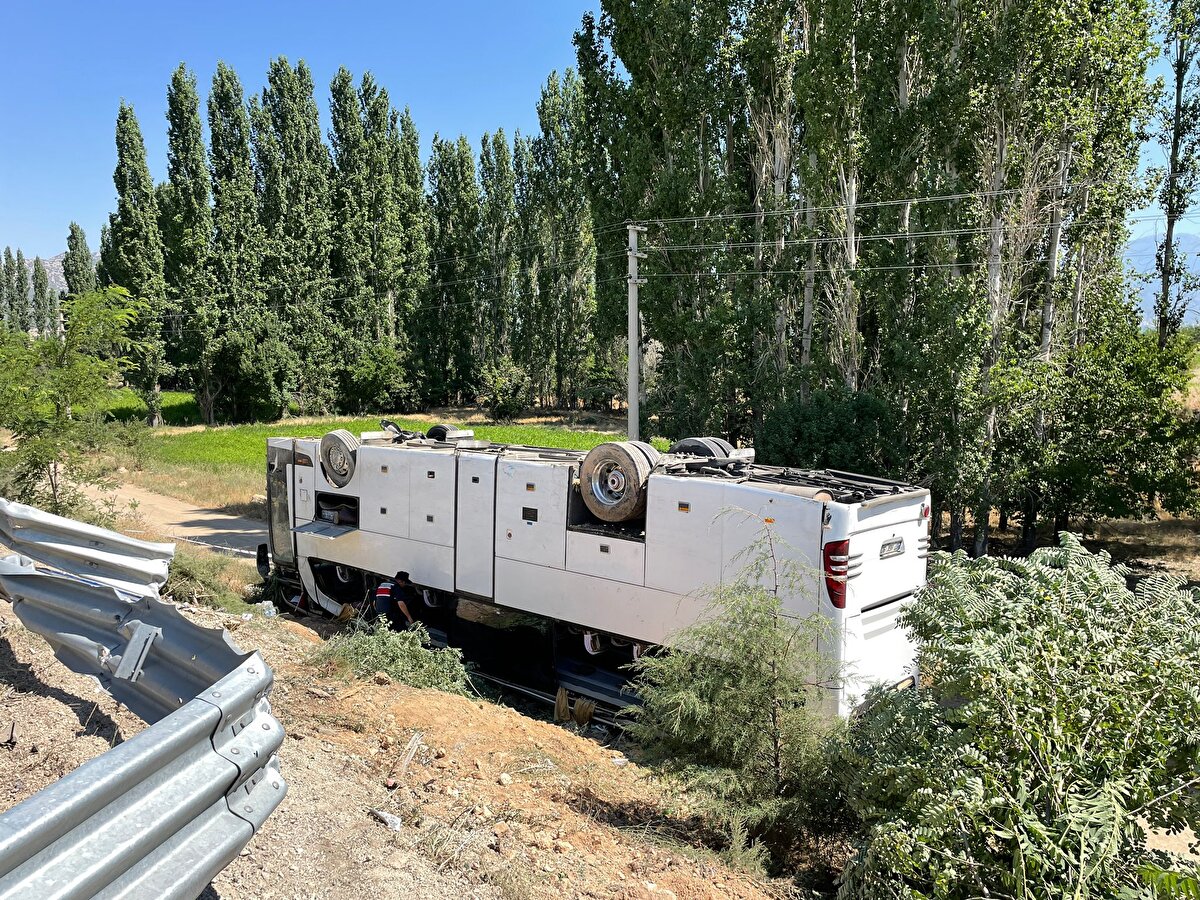 Denizli'de tur otobüsü şarampole devrildi