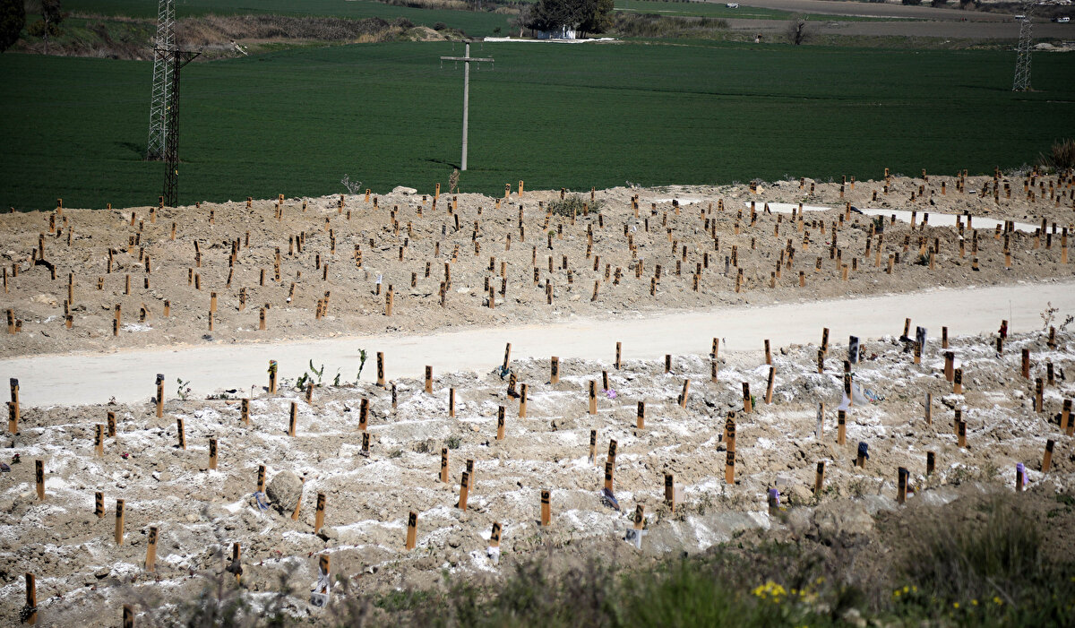 Kahramanmaraş merkezli 11 ilde büyük yıkım ve binlerce can kaybına neden olan depremlerde Hatay'da hayatını kaybedenlerin cenazeleri, kentte çeşitli noktalarda oluşturulan mezarlıklara defnediliyor.