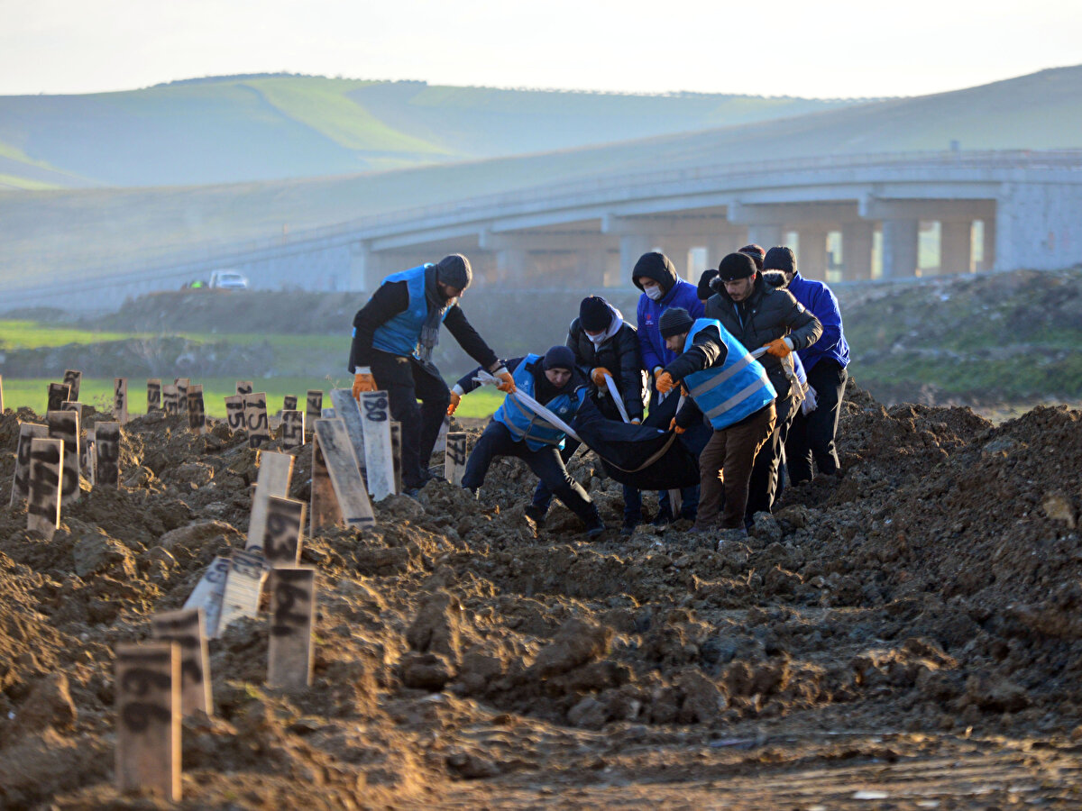 Kahramanmaraş merkezli 10 ili kapsayan 7.7 ve 7.6 büyüklüğündeki depremler sonrası yaşamlarını yitirenler toprağa veriliyor. Depremin ağır hasar verdiği illerden Hatay'ın Antakya ilçesinde, 'deprem mezarlığı' oluşturuldu. Kepçeler tarafından kazılan ve numaralanan mezarlara dualar eşliğinde defin yapılıyor.
