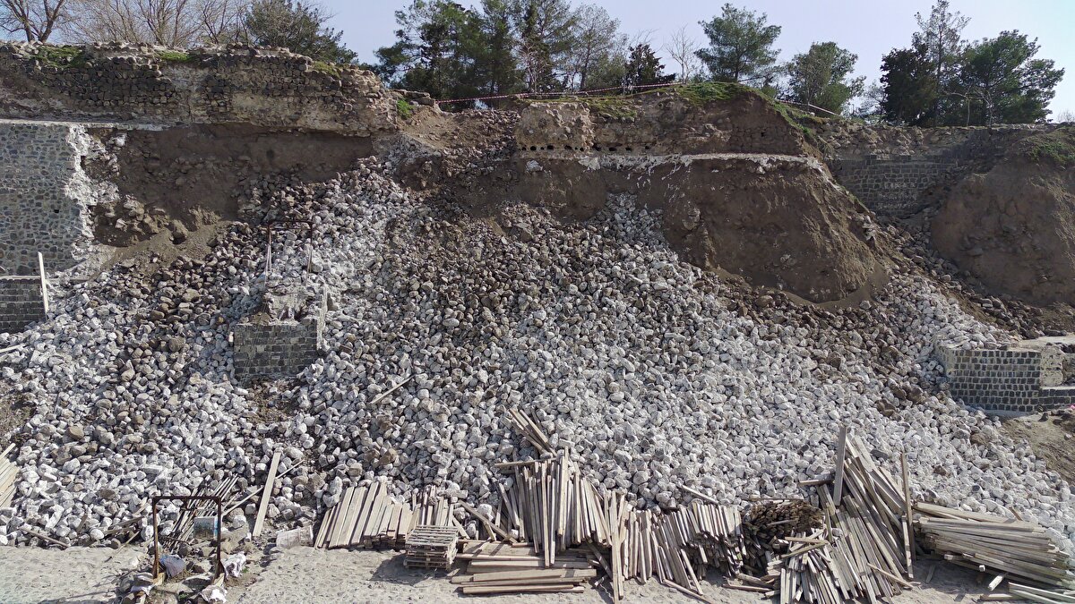 Tarihi kalenin restore edilen doğu ve güneyindeki duvarlar depremin etkisiyle yıkılırken, enkazlar kale eteğinde birikti.
