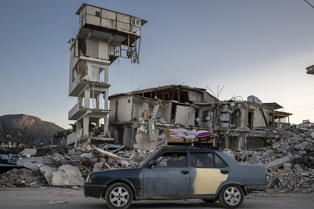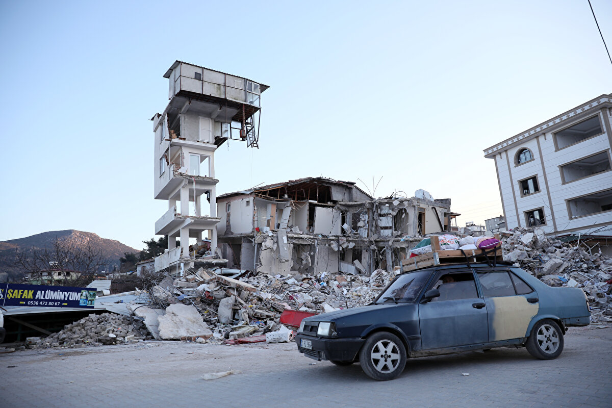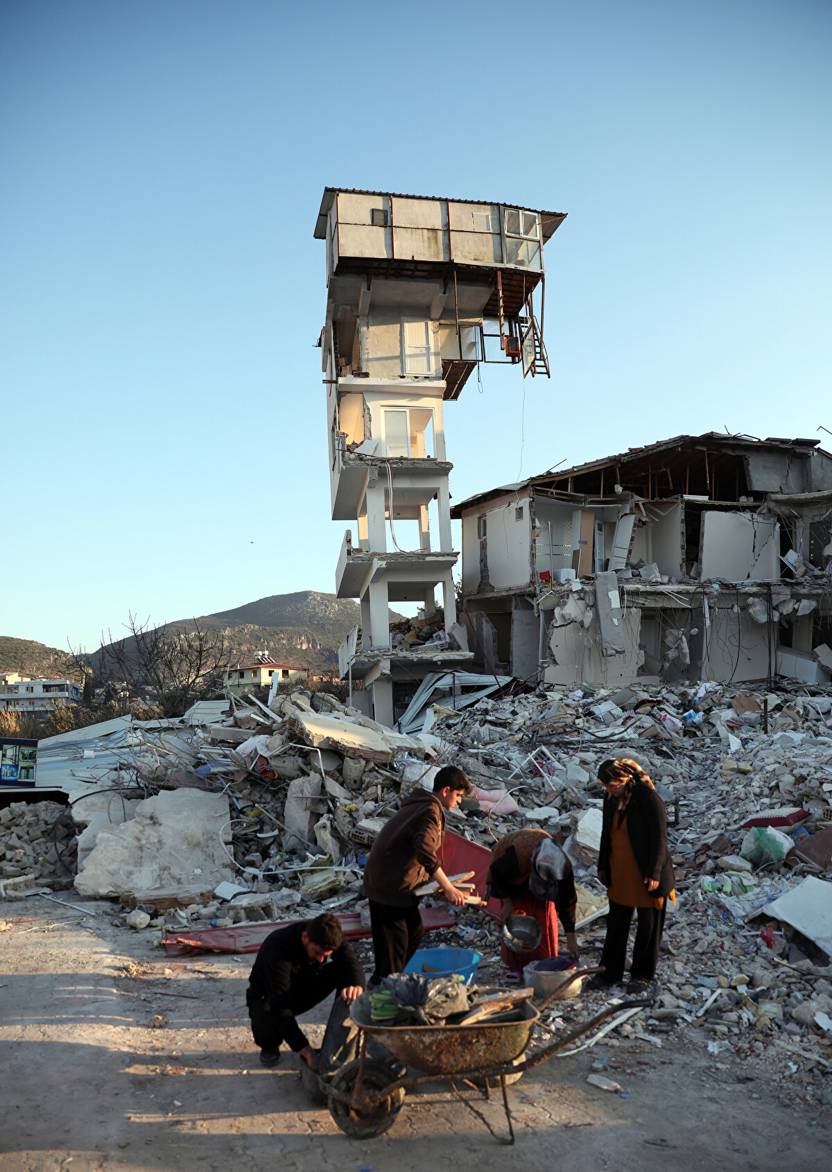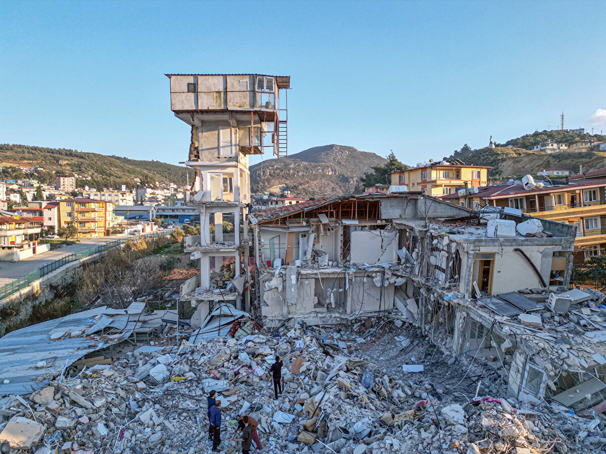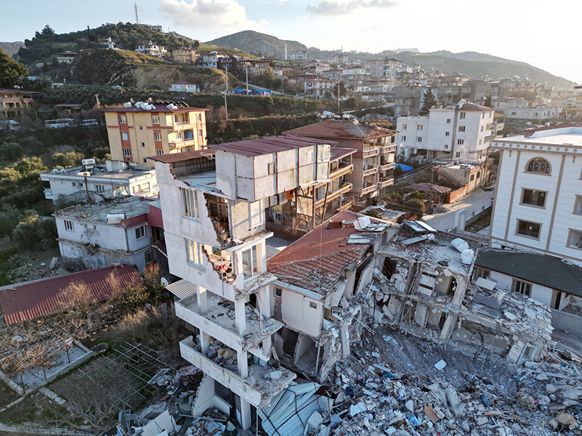 Hatay'ın merkez Antakya ilçesinde, Kahramanmaraş merkezli depremlerde bir bina çökmesine rağmen yanında bulunan ek yapısı yıkılmadı.