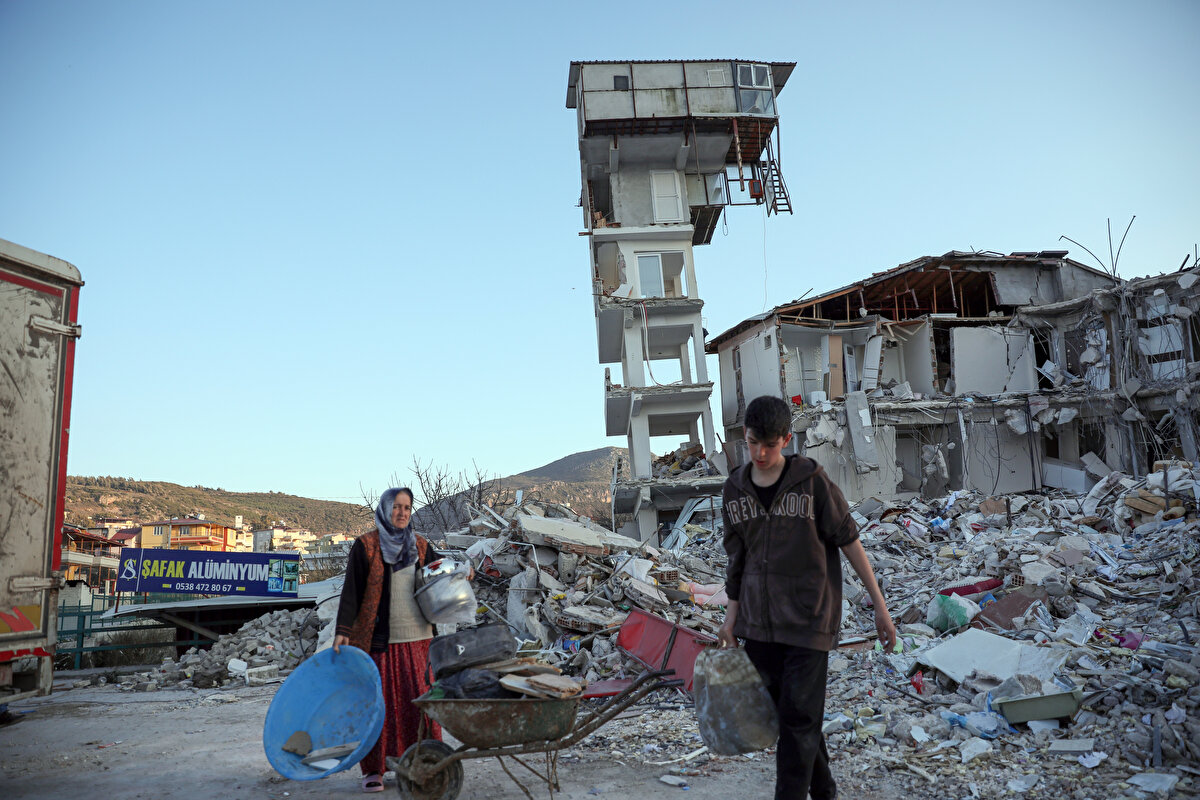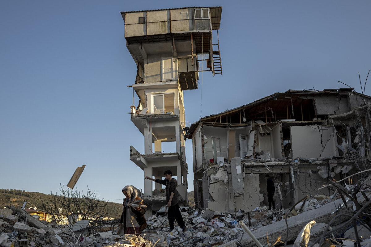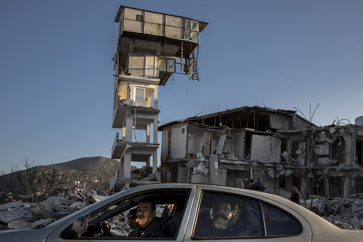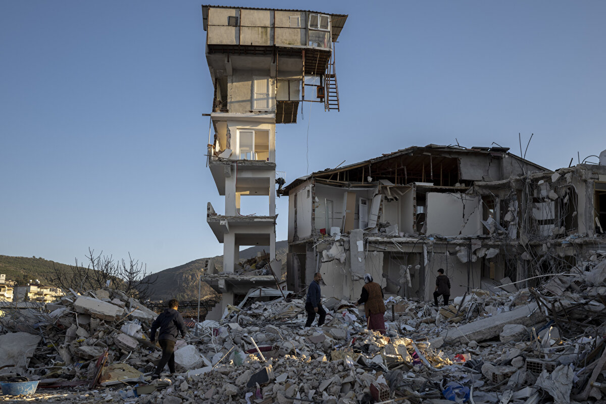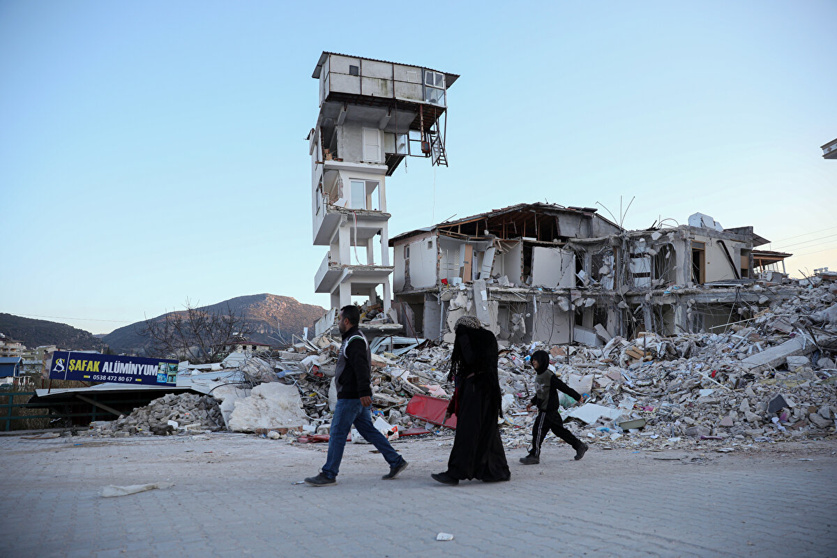 Hatay'ın merkez Antakya ilçesinde, Kahramanmaraş merkezli depremlerde bir bina çökmesine rağmen yanında bulunan ek yapısı yıkılmadı.