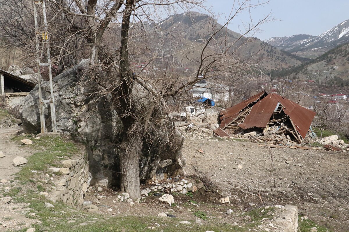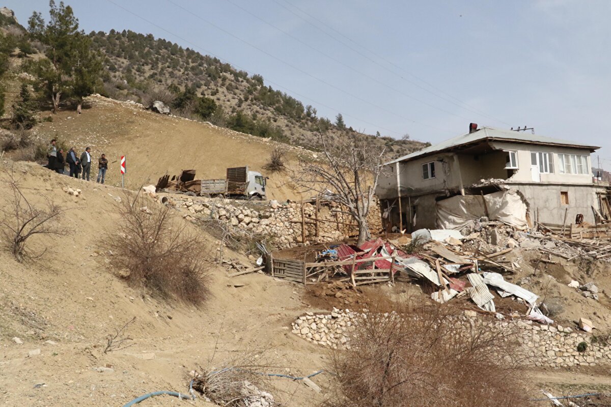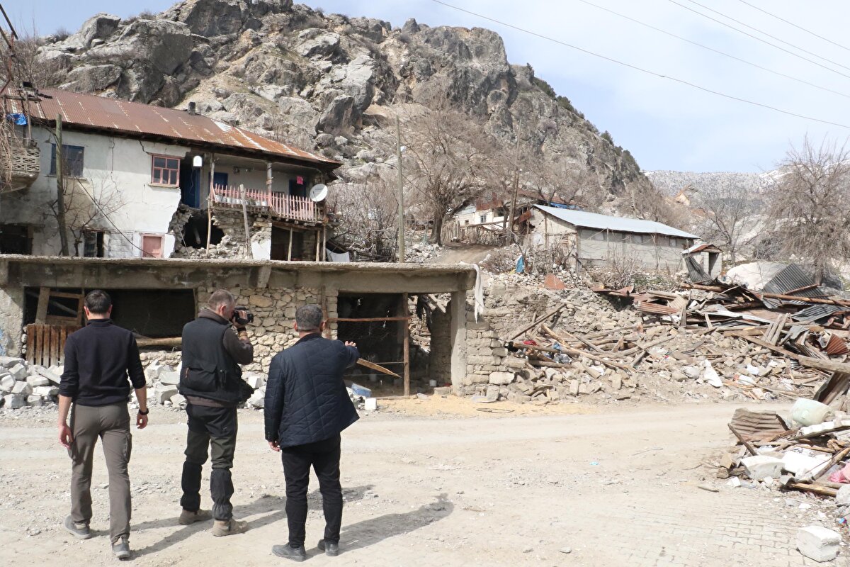 Kahramanmaraş'a yaklaşık 50 kilometre mesafede olan Şahinkayası Mahallesi'nde 6 Şubat'ta meydana gelen ikinci depremde, yüksek tepelerden kopan büyük bir kaya parçası aşağı yuvarlandı.