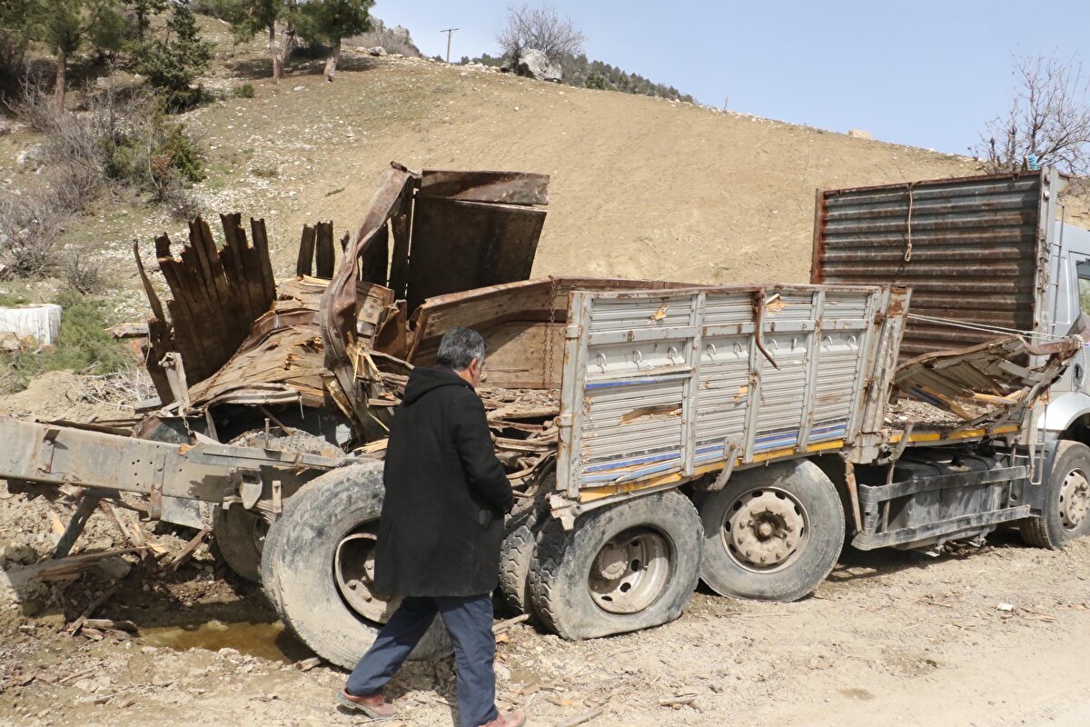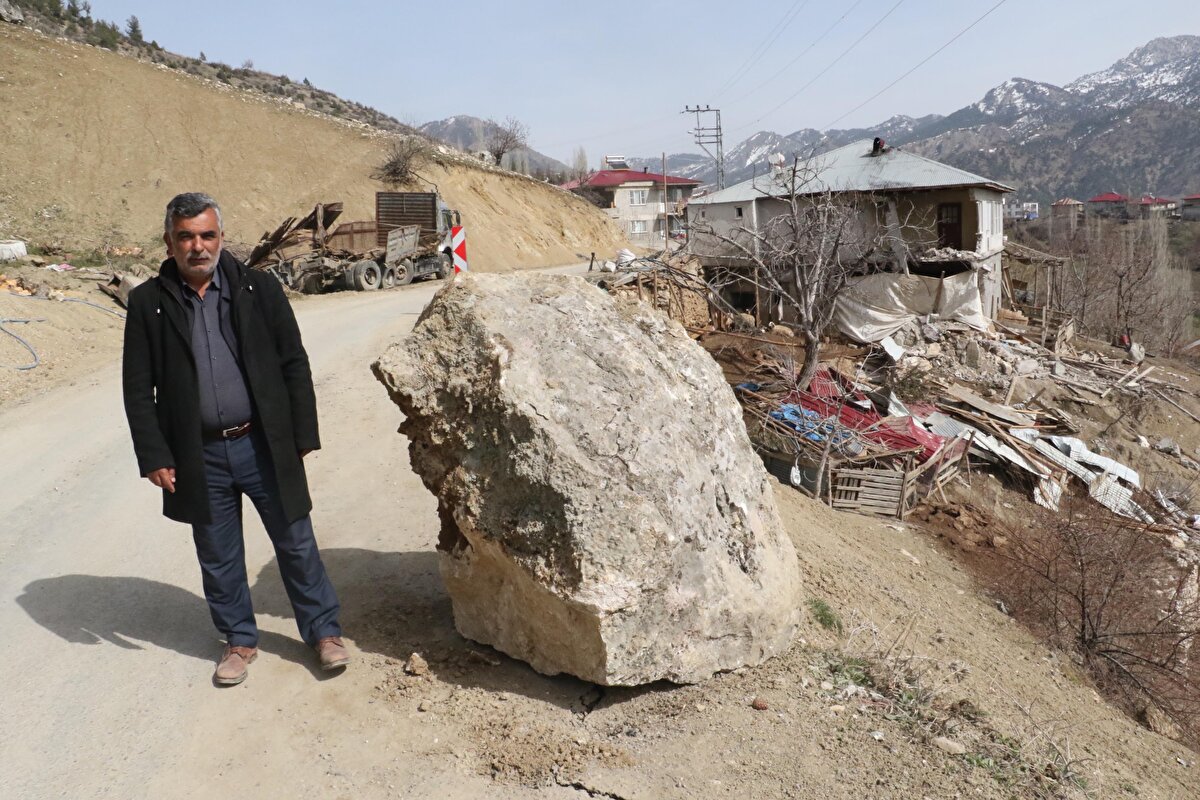 Yeni bir depremde çok daha büyüklerinin tepelerden yuvarlanma endişesi yaşadıklarını anlatan Karasu, “Sabah olan birinci depremde hiçbir şey hissetmedik. İkinci depremde bir kayanın gelmesinden dolayı bizi bir hayli zarara uğrattı. Biz dışarıda yolları açmanın hesabını yapıyorduk, yerlerde kar vardı. Biz de merkeze gitmeyi düşünüyorduk. Yol kıyısında benim kepçem vardı, onu çalıştırıp yolu açacaktım. Deprem olduğu anda hepimiz karın içine yıkıldık. Ayakta dikilenler devrildi, o kadar şiddetliydi yani. Taş düştü, arabanın üzerinden geçti. Kim bilirdi böyle hasar olacağını, böyle kayanın geleceğini? Yıllardır boşalmamış kaya bugün patladı. Bence ağırlığı 300 tonu geçer. Çok büyüktü" diye konuştu.