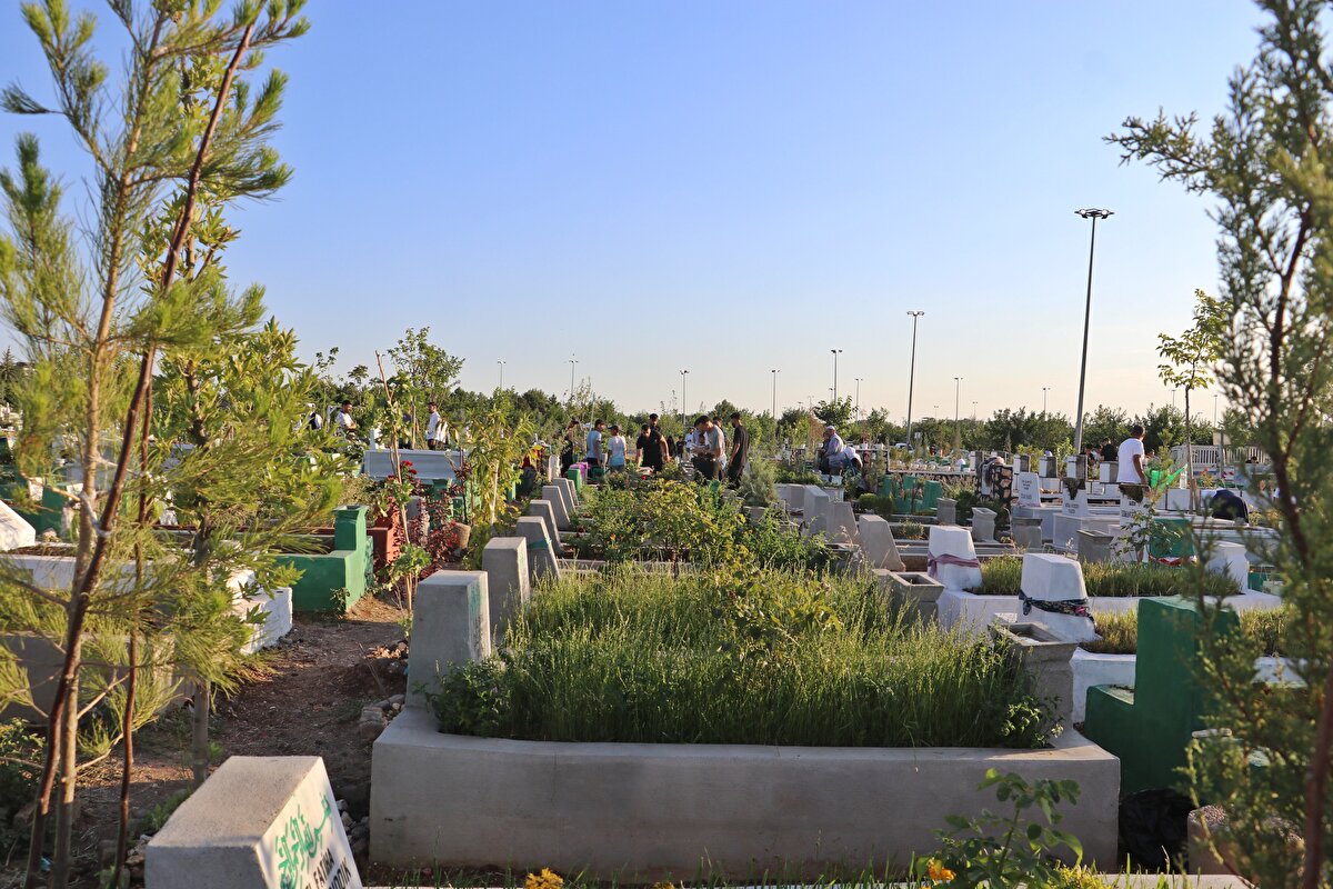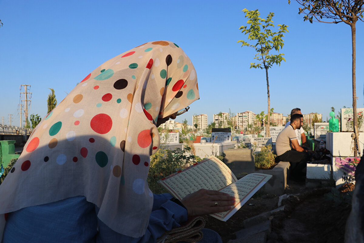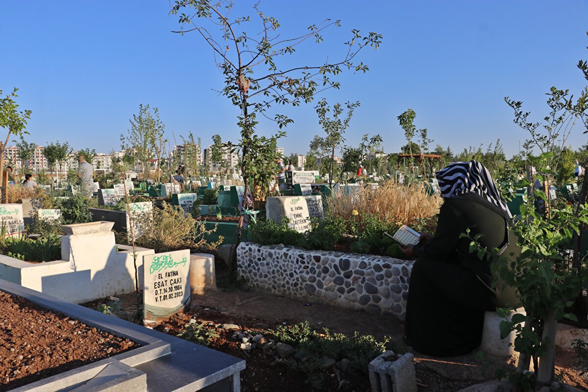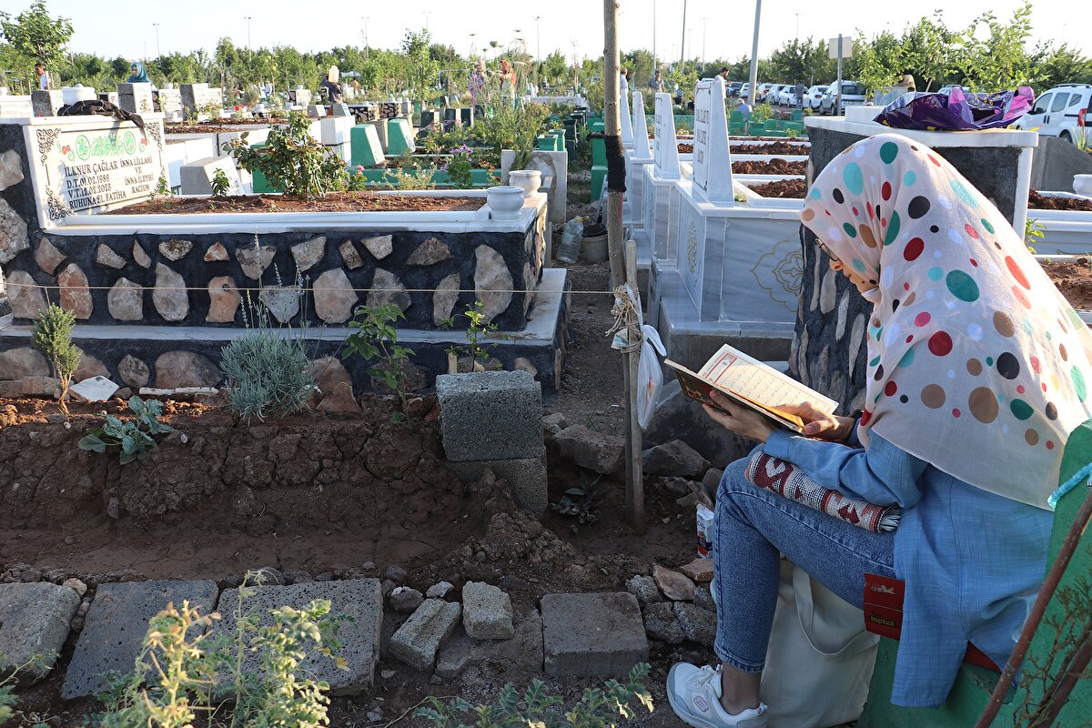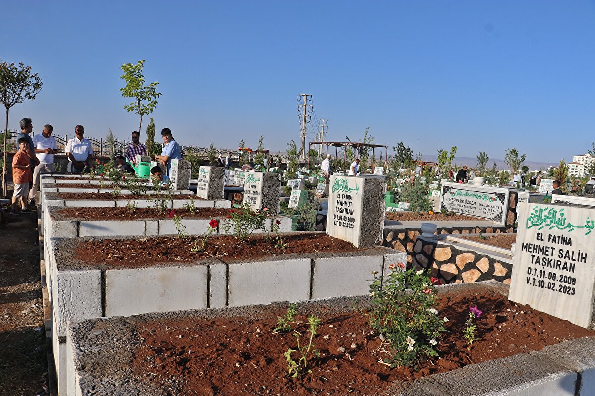 Kahramanmaraş merkezli 6 Şubat'ta meydana gelen depremlerde, Diyarbakır'da hayatını kaybedenlerin yakınları, Kurban Bayramı'nın ilk gününde, bayram namazının ardından Bağlar ilçesindeki Yeniköy Asri Mezarlığı'na gitti.