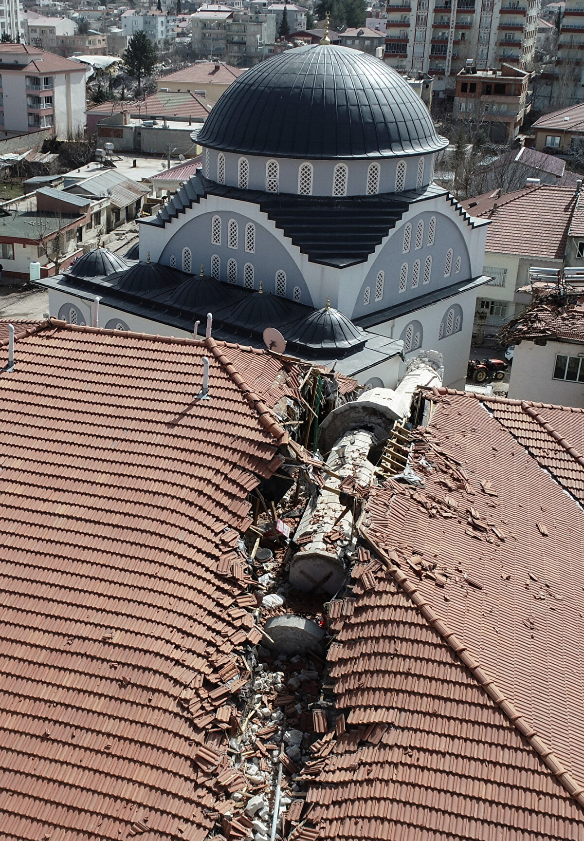 Adıyaman'ın Gölbaşı ilçesinde depremde yıkılan minare üç katlı apartman üstüne devrildi. Fatih Mahallesi'ndeki Hacı Gani Diler Camisi'nin minaresi, 6 Şubat'ta saat 04.17'de meydana gelen ve merkez üssü Kahramanmaraş'ın Pazarcık ilçesi olan 7,7 şiddetindeki depremde yıkıldı.