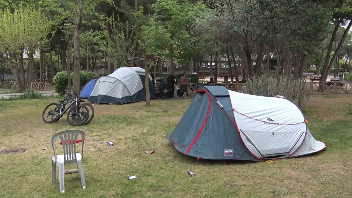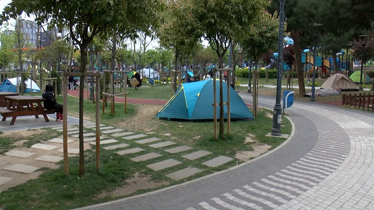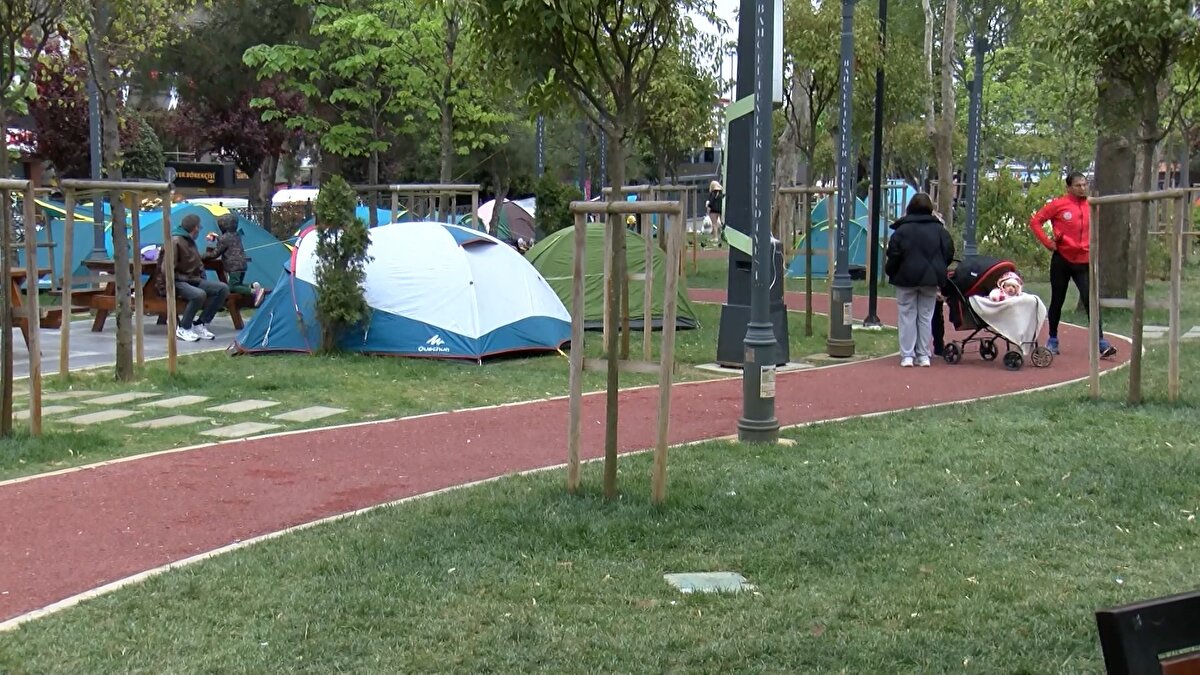 Fatih’teki çeşitli parklarda bazı vatandaşlar kurdukları çadırlarda kalırken bazıları ise yere serdikleri yataklarında uyumayı tercih etti.