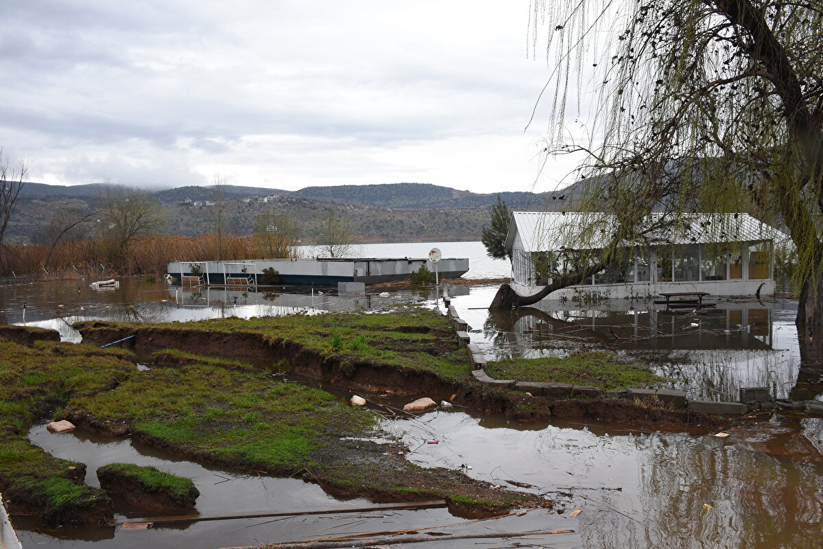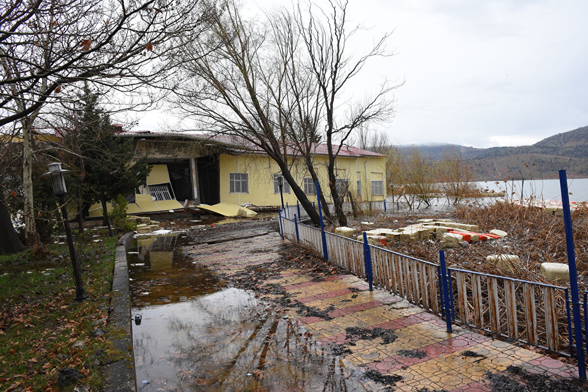 Depremle zemini yaklaşık 1,5 metre çöken tesisler gölün içinde kaldı