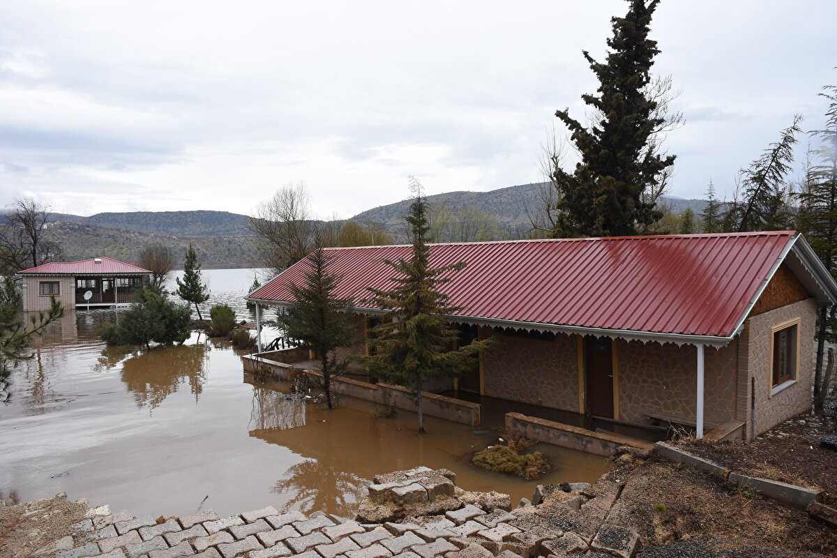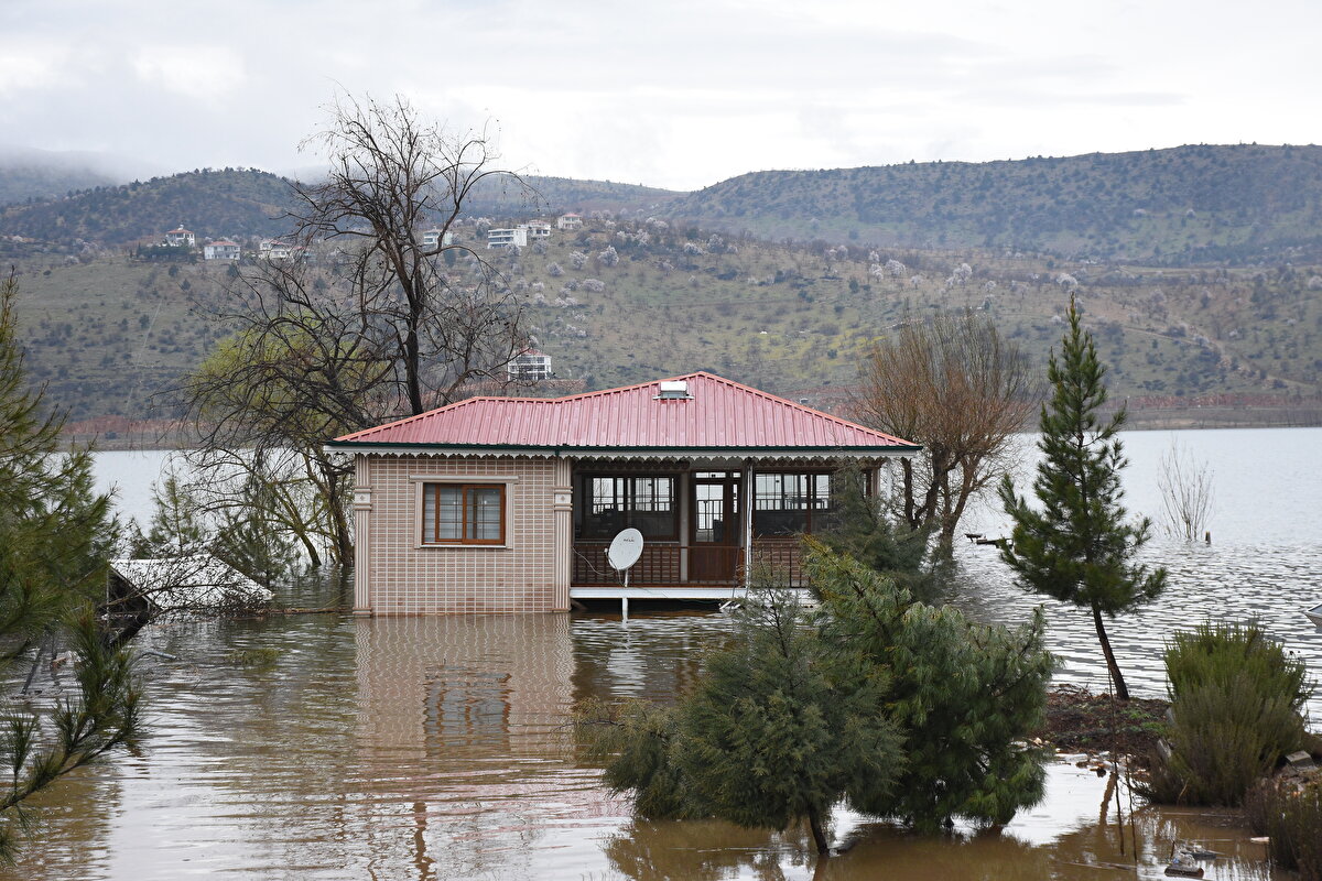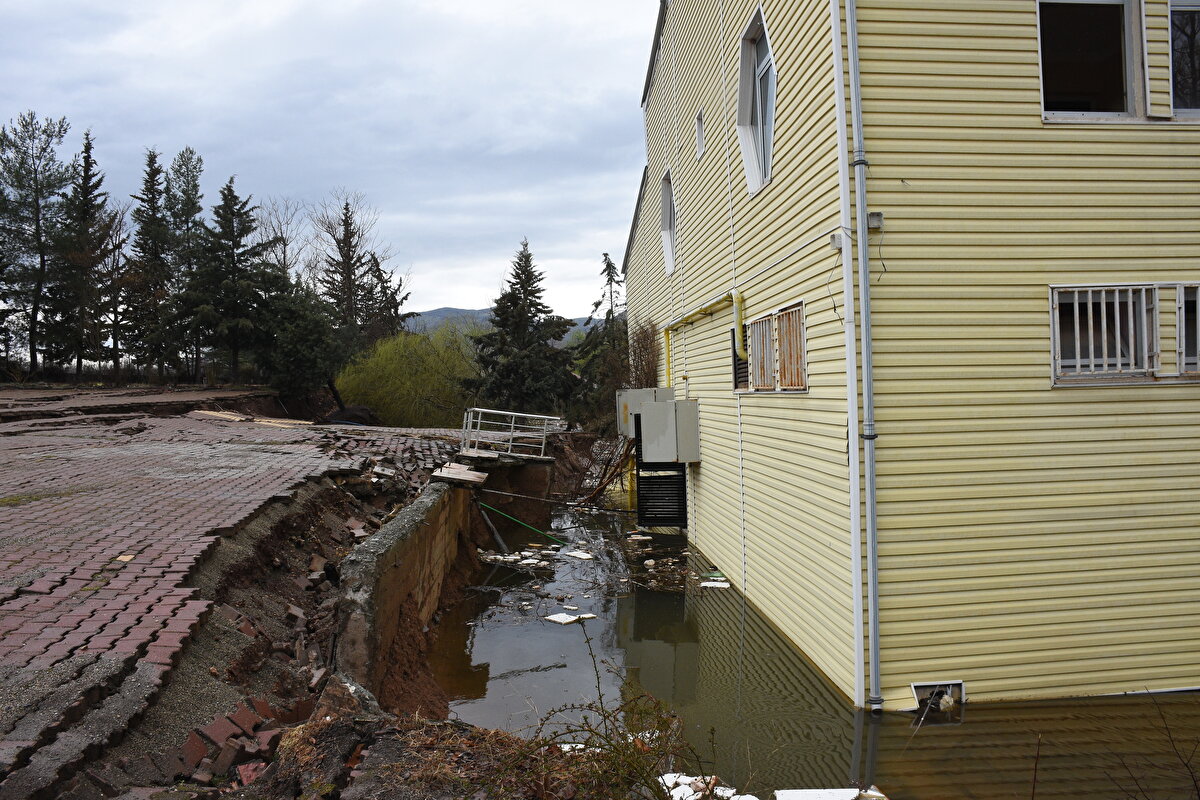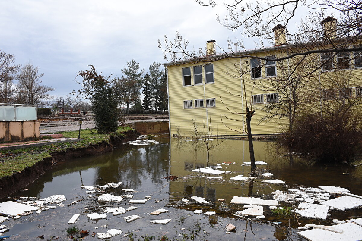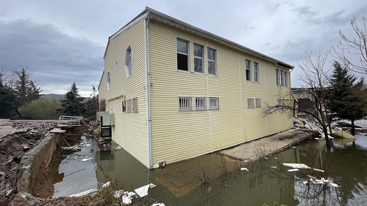 Kahramanmaraş merkezli 6 Şubat'ta meydana gelen depremlerin yıkıma yol açtığı Adıyaman'ın Gölbaşı ilçesinde zemindeki çökme nedeniyle su altında kalan bazı tesisler kullanılamaz hale geldi.
