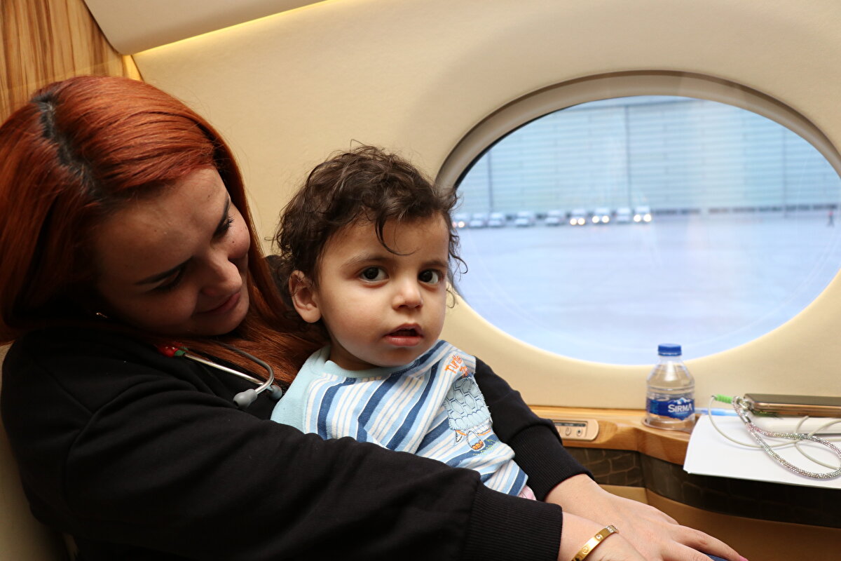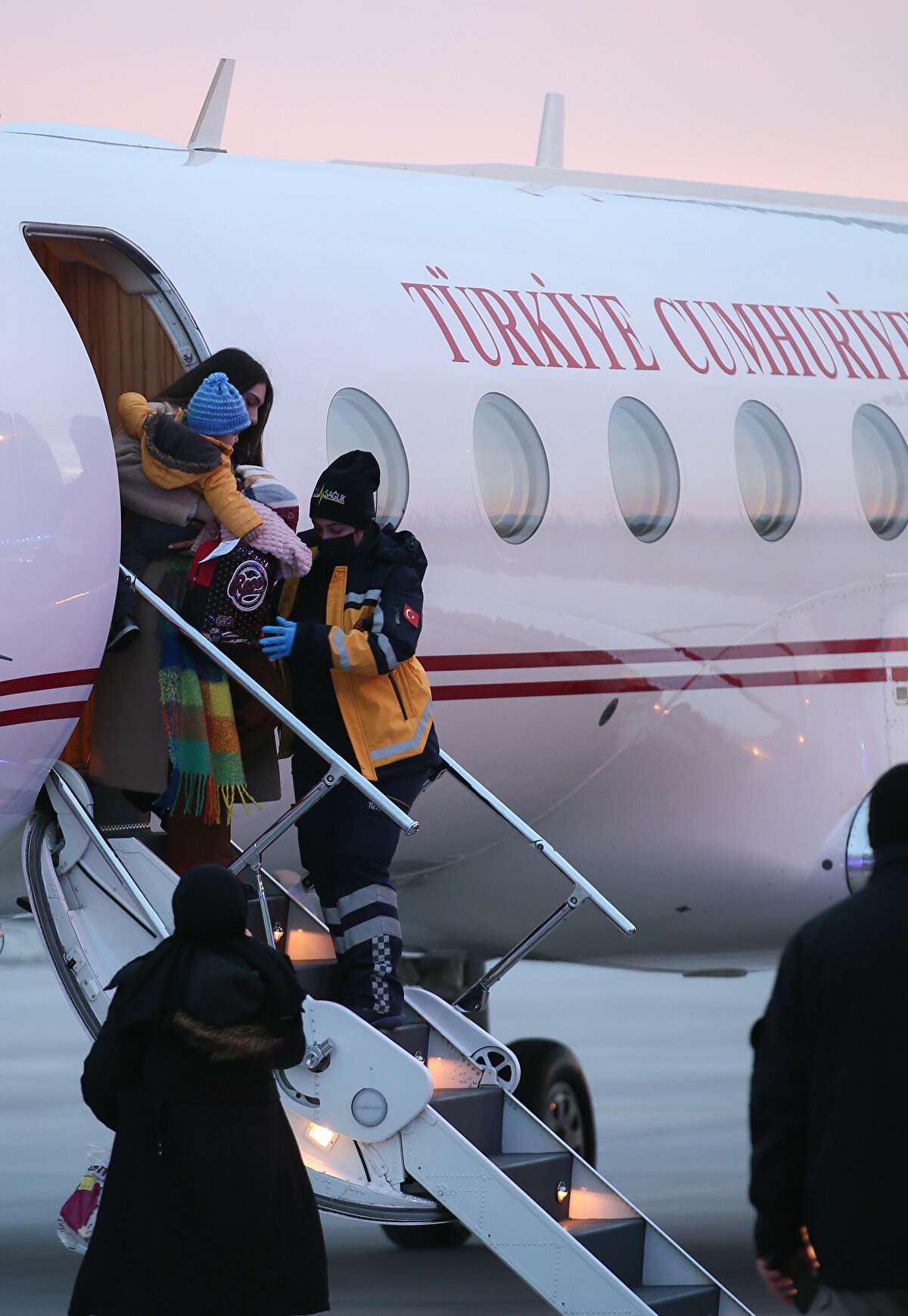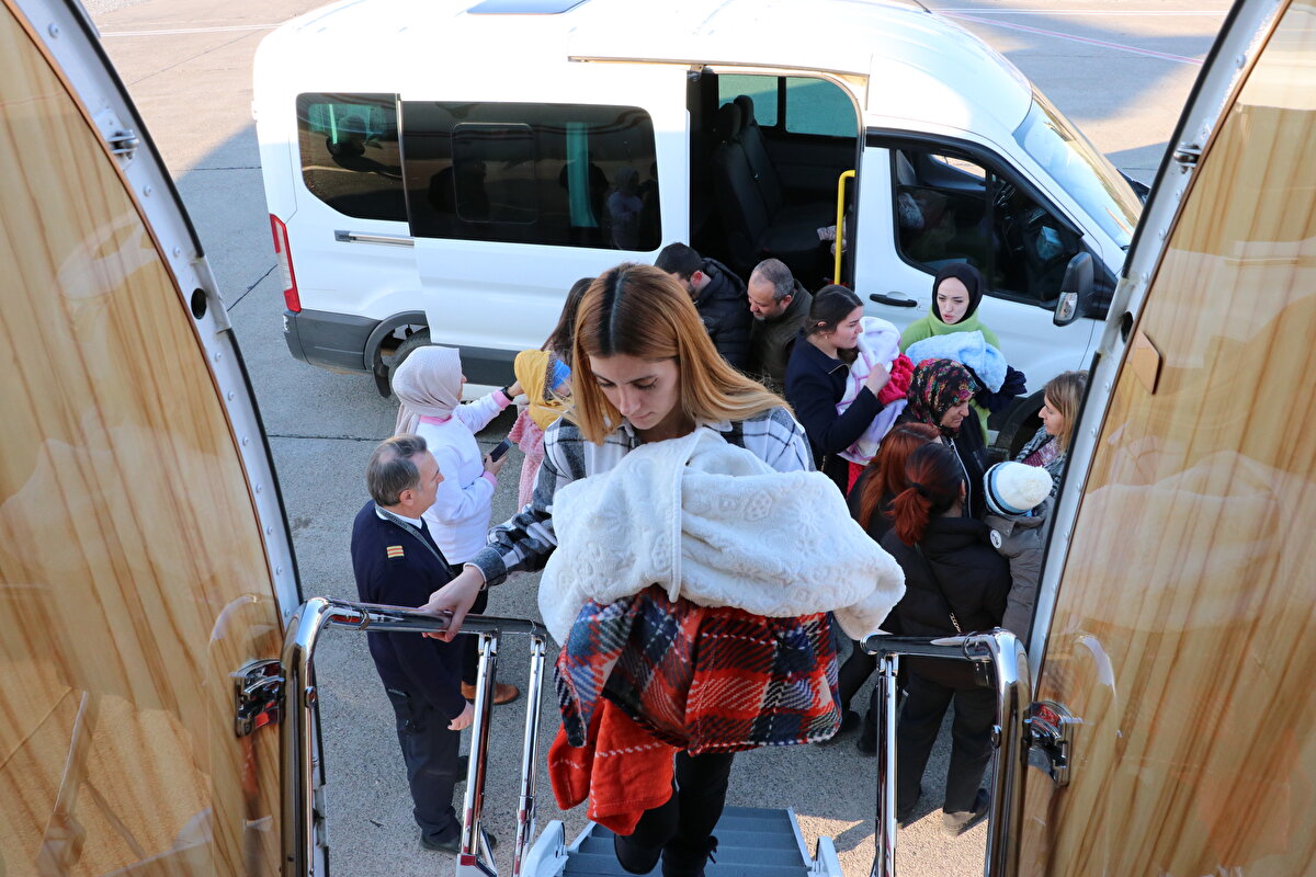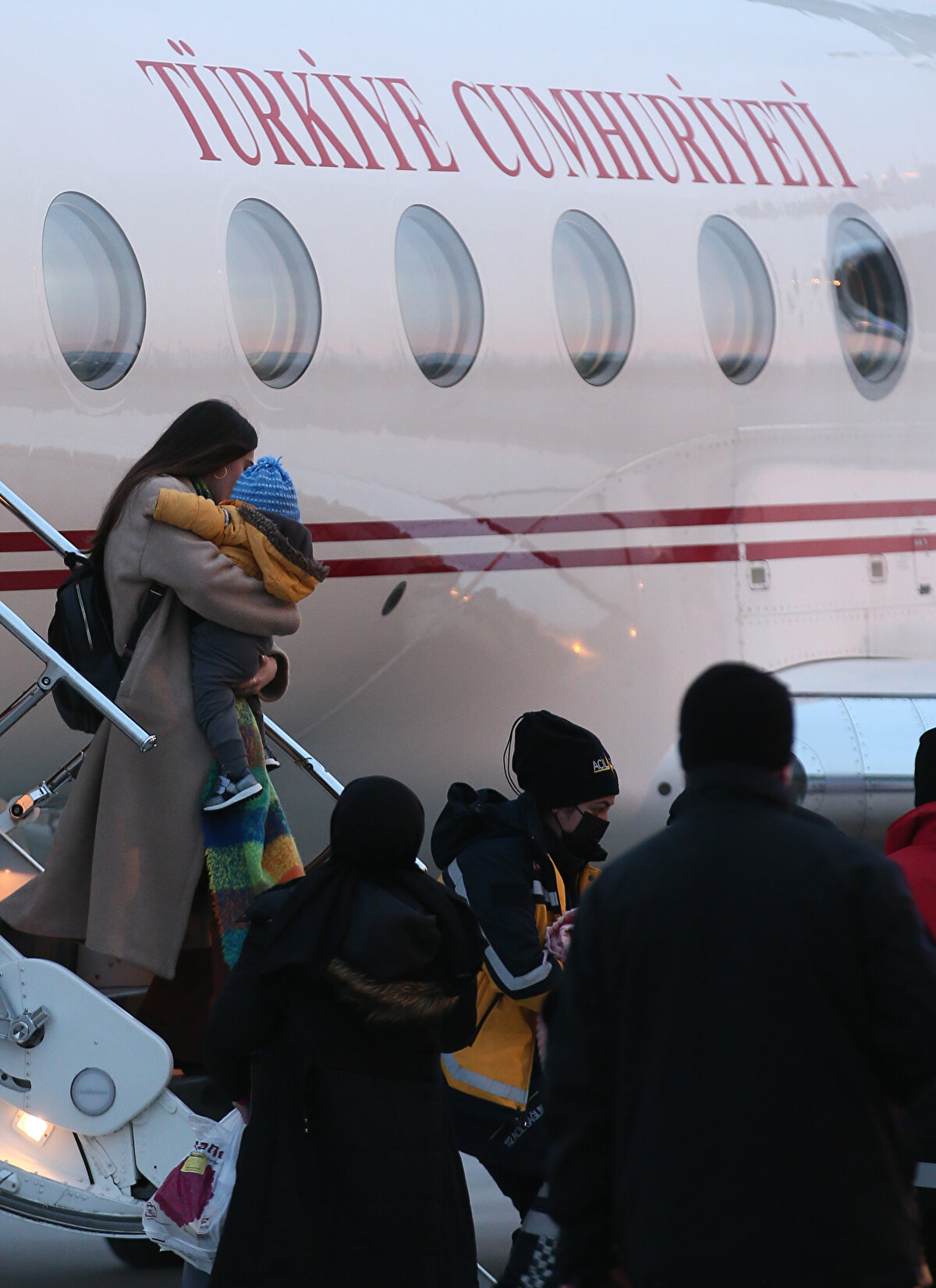 Bu kapsamda, Cumhurbaşkanlığına ait TC-CBK uçağı, 2'si Kahramanmaraş, 9'u Adana'dan olmak üzere 11 depremzede bebeği almak üzere Esenboğa Havalimanı'ndan hareket etti.
