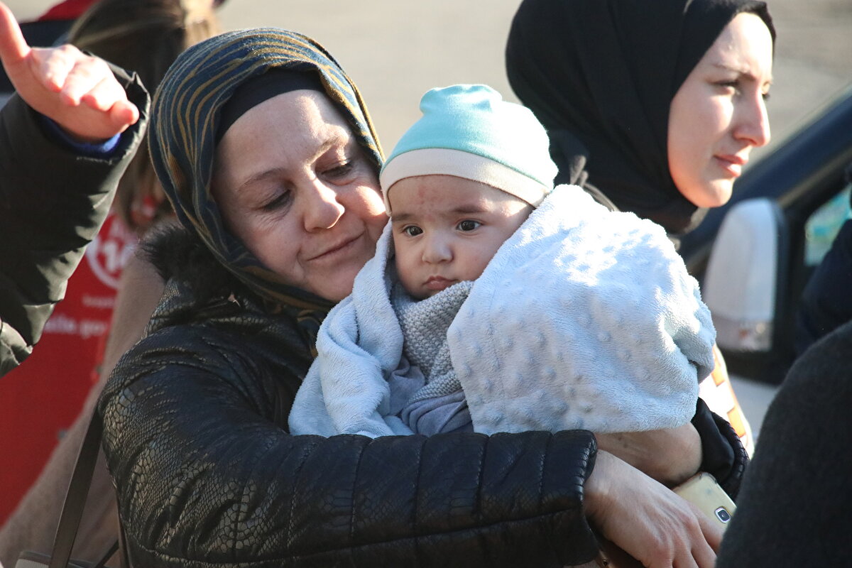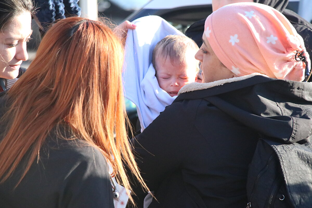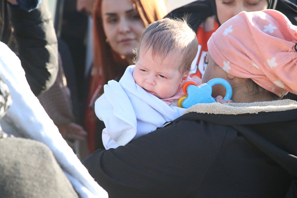 Adana Havalimanı'na iniş yapan uçaktaki Aile ve Sosyal Hizmetler Bakanlığına bağlı kuruluşlarda görevli 11 bakıcı anne ile 2 doktor, ilk sağlık kontrolü yapılan bebekleri teslim aldı.
